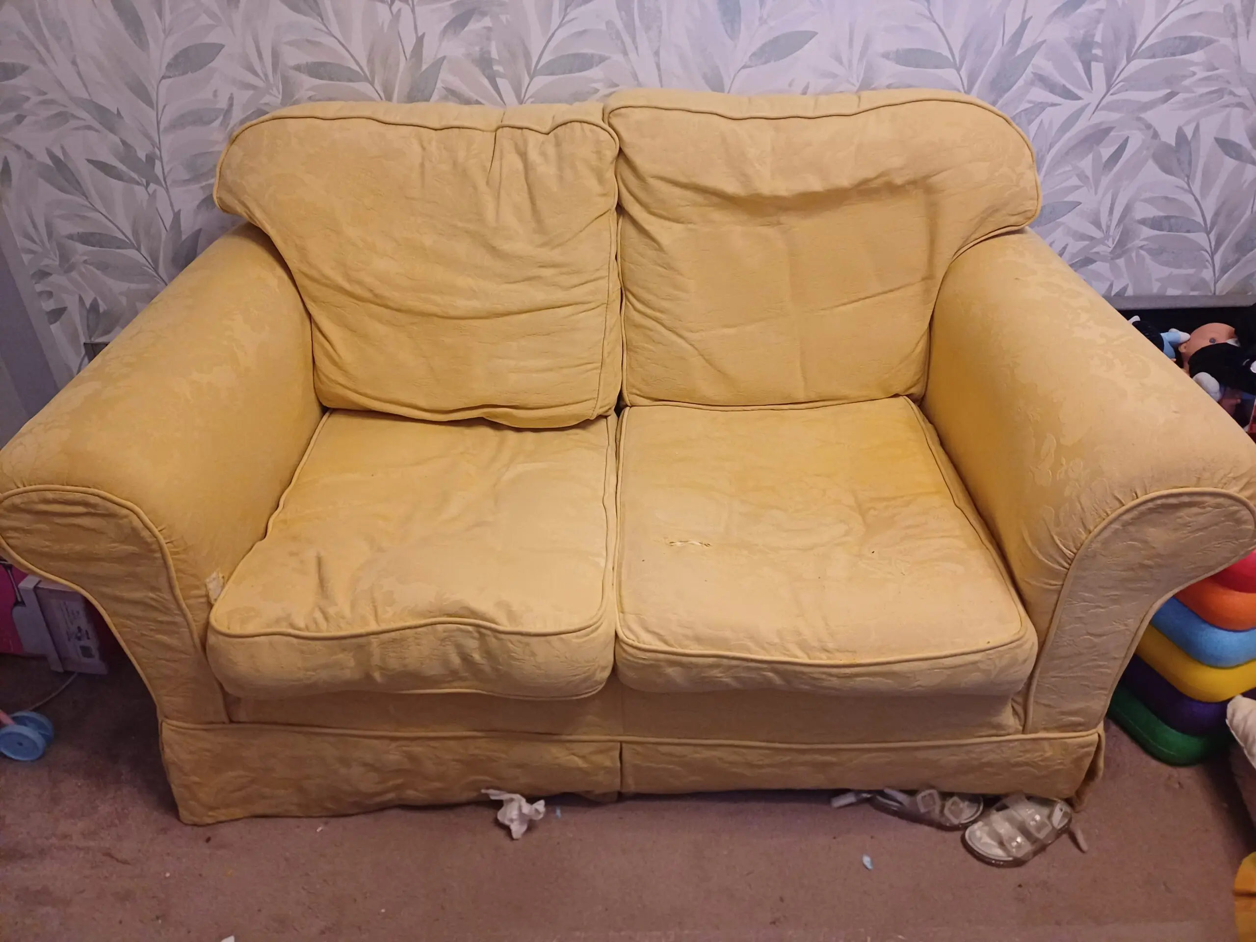 Looks better admittedly with a large throw over it and some cushions. Has done okay for us until our new one arrives, would suit student or new home.