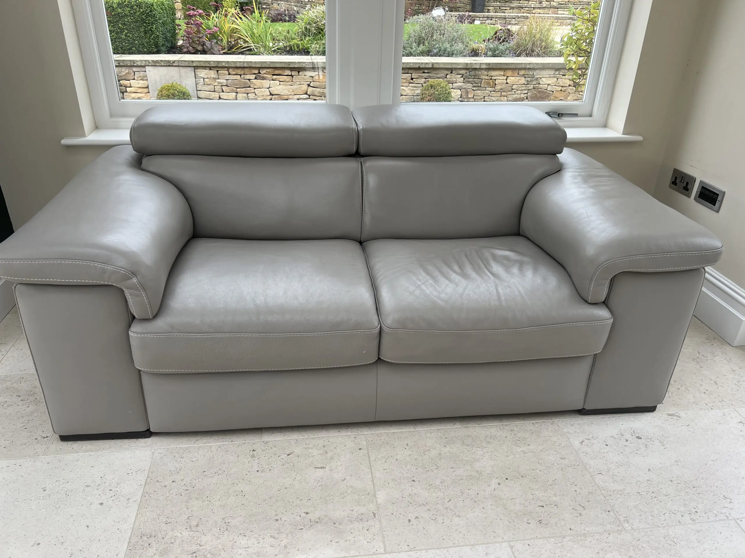 Natuzzi Editions 2 seater sofa. Head rests flip up to give an overall height of 110cm or down a height of 79cm.