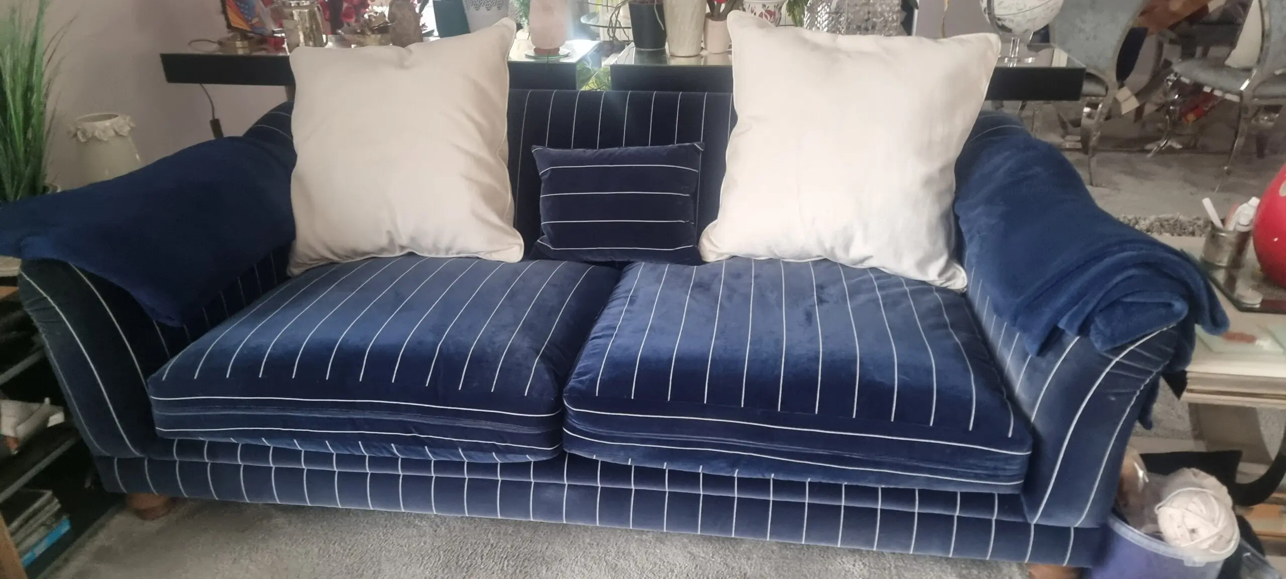 Navy with white strip settee