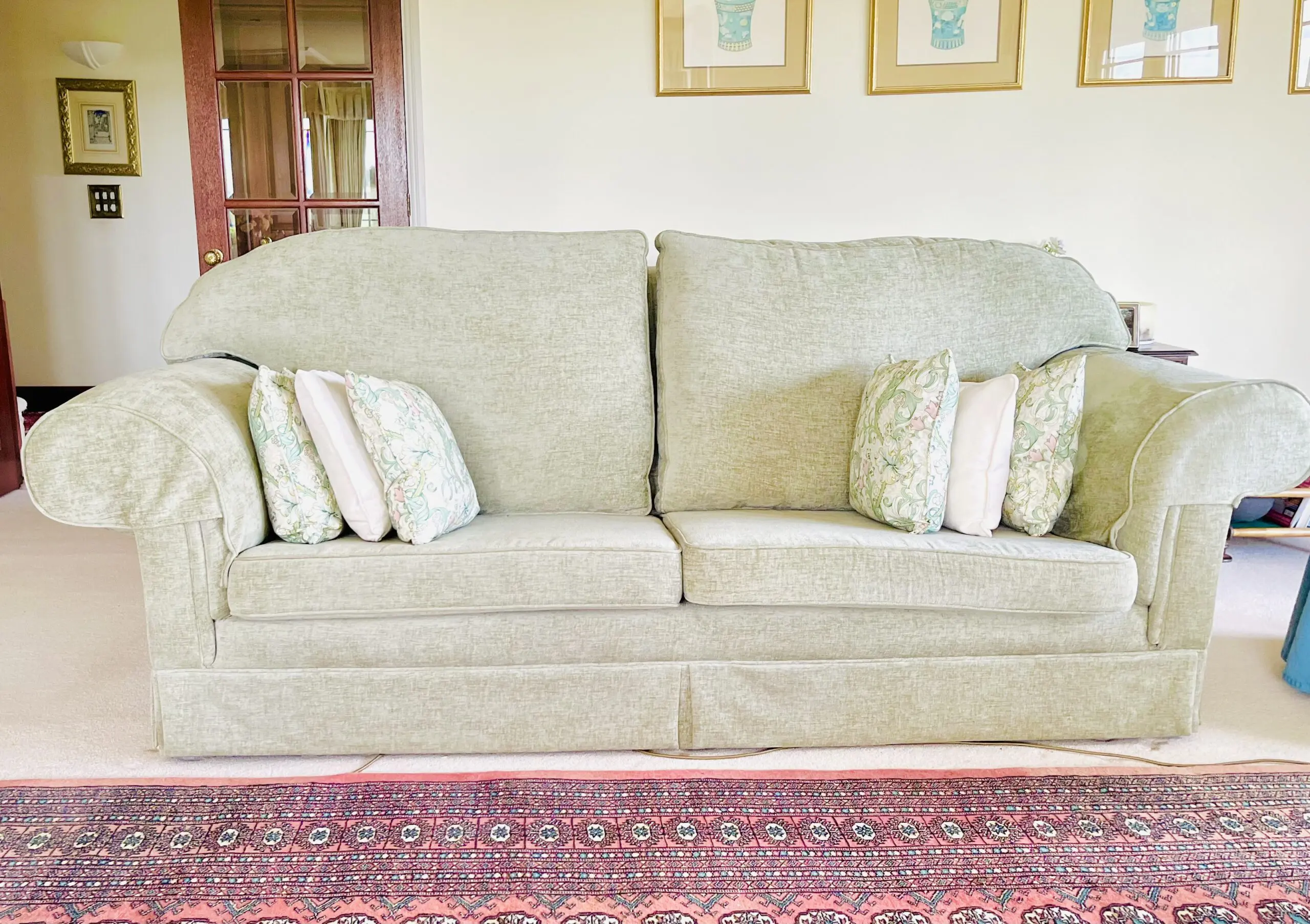 Lovely big 2 seater very pale sage sofa, scatter cushions included