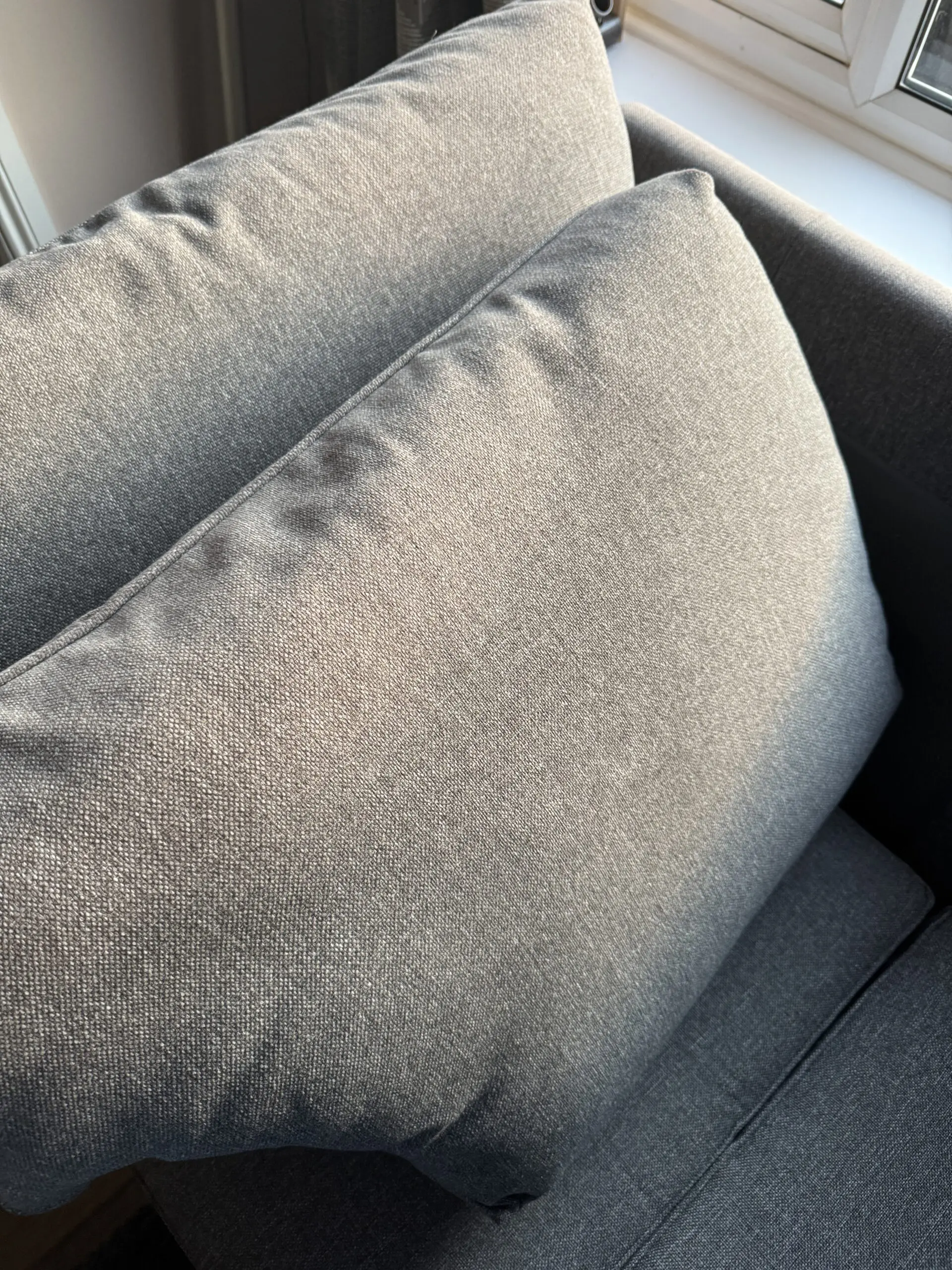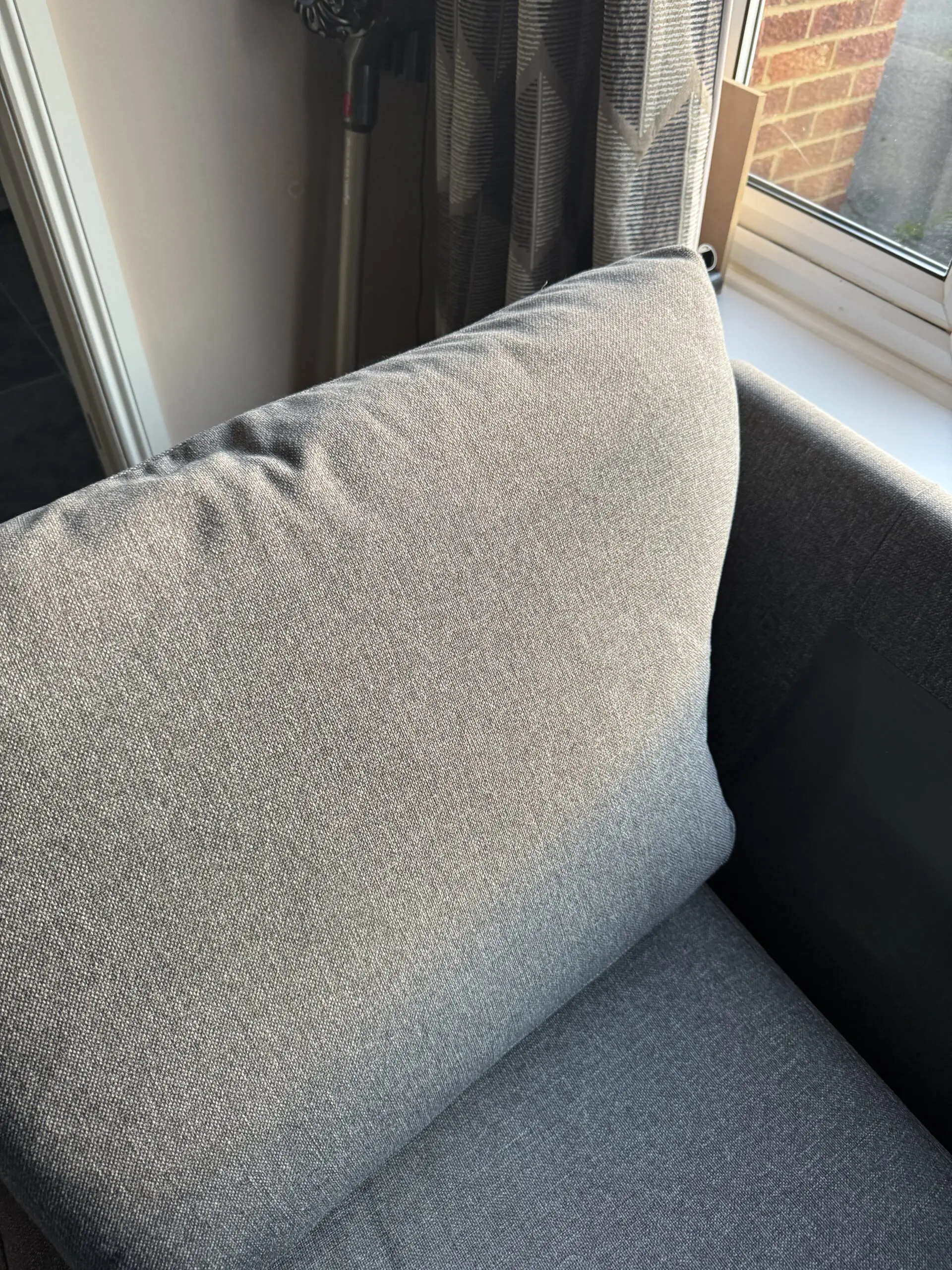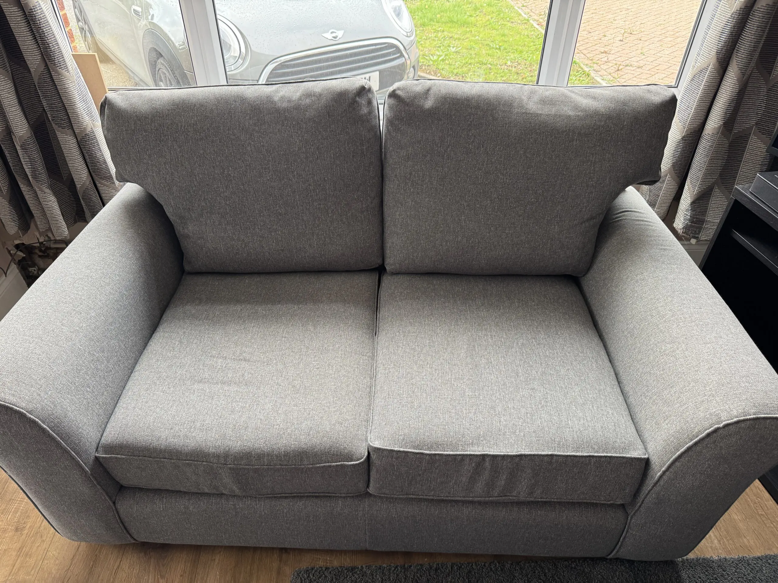 Grey sofa in excellent condition and barely sat on (slight, barely noticeable sun fading on back of cushions), only getting rid of due to declutter and redecoration.