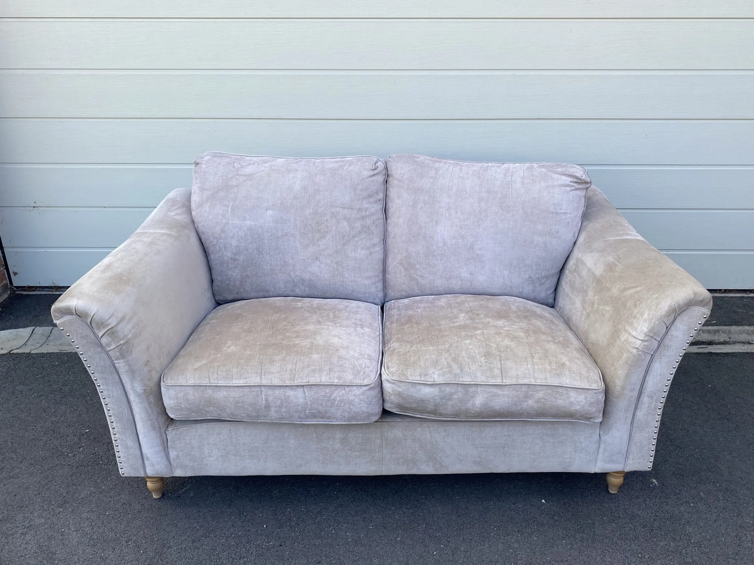 Next 2 seater sofa – Beige – studded down each side – natural oak feet
