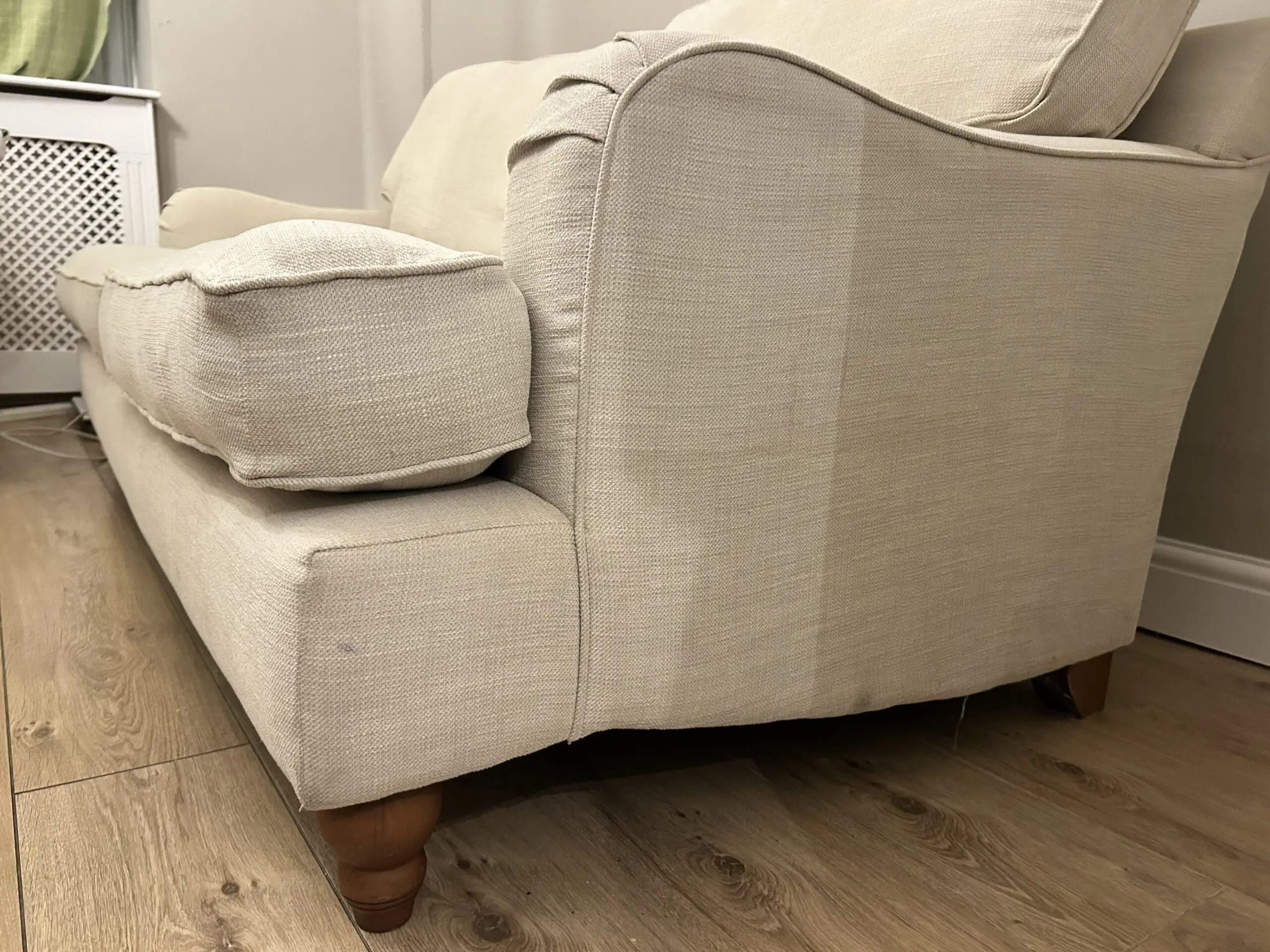 This lovely 2-seater sofa is extremely comfortable and well made from next. sturdy construction with dark wooden legs.