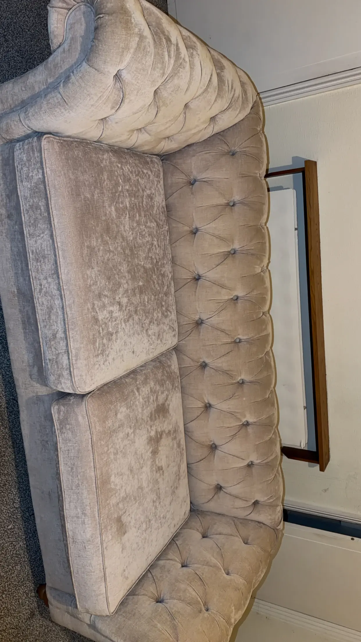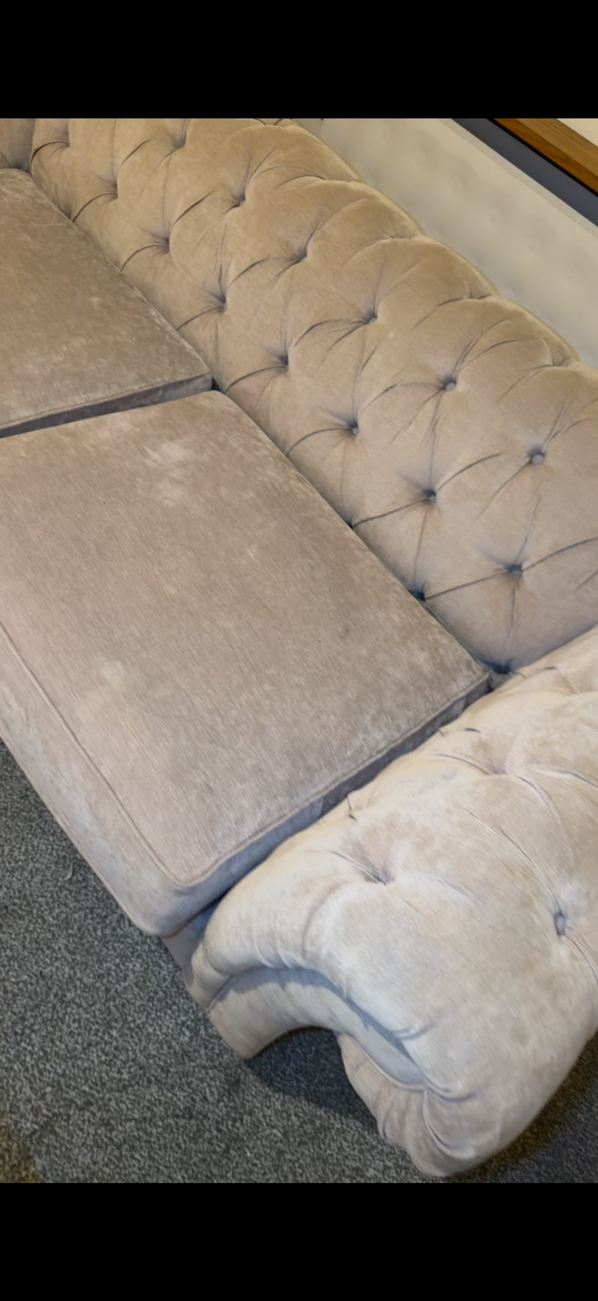 This stunning Next Gosford sofa set in distressed natural velour brings classic elegance to any living space