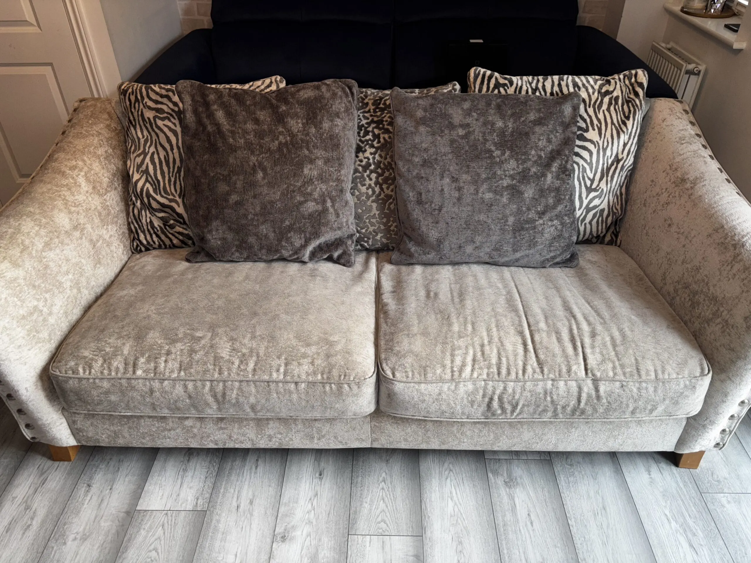 Next Home Portia Scatter Back – Studded in Grey for sale. Smoke and Pet Free Home. Cushions included if wanted.