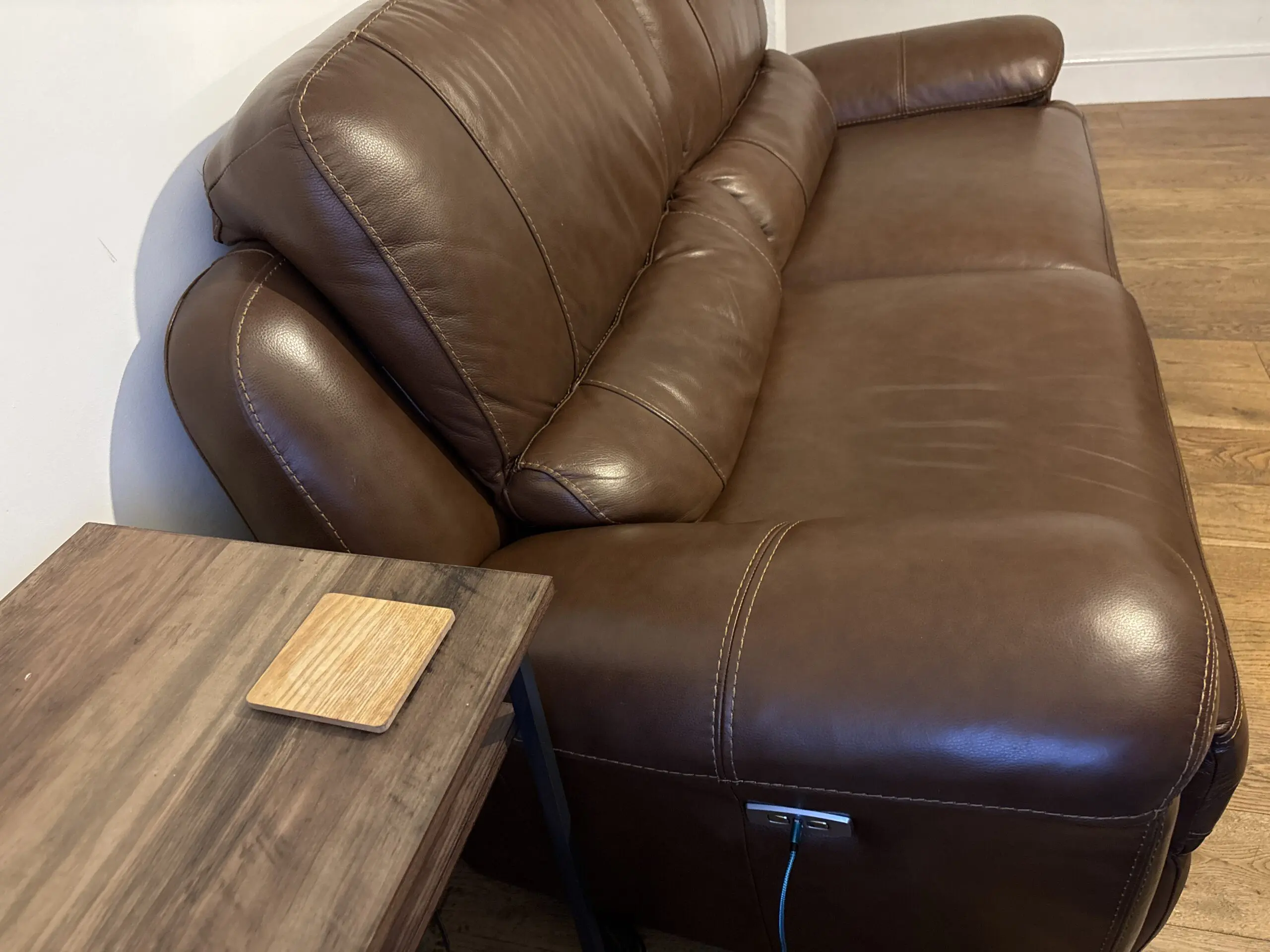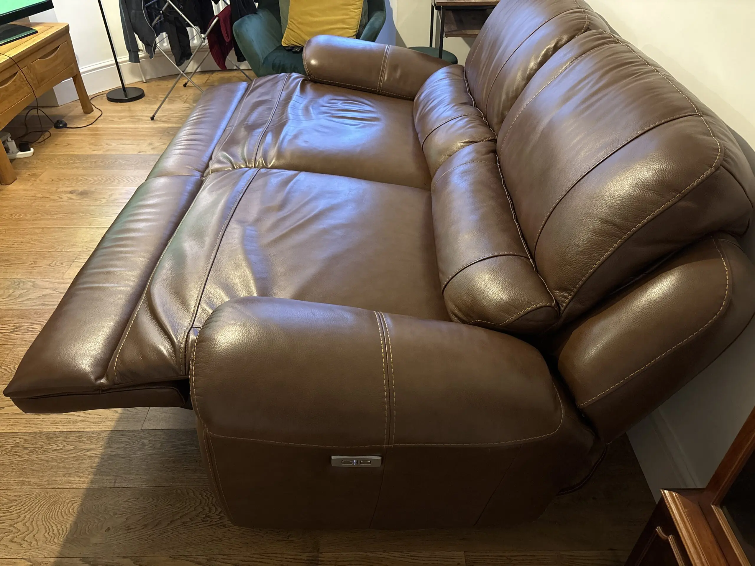 Brown leather 2 seater, electric reclining sofa. With 2 USB charging points. Great condition. Couple of small marks.