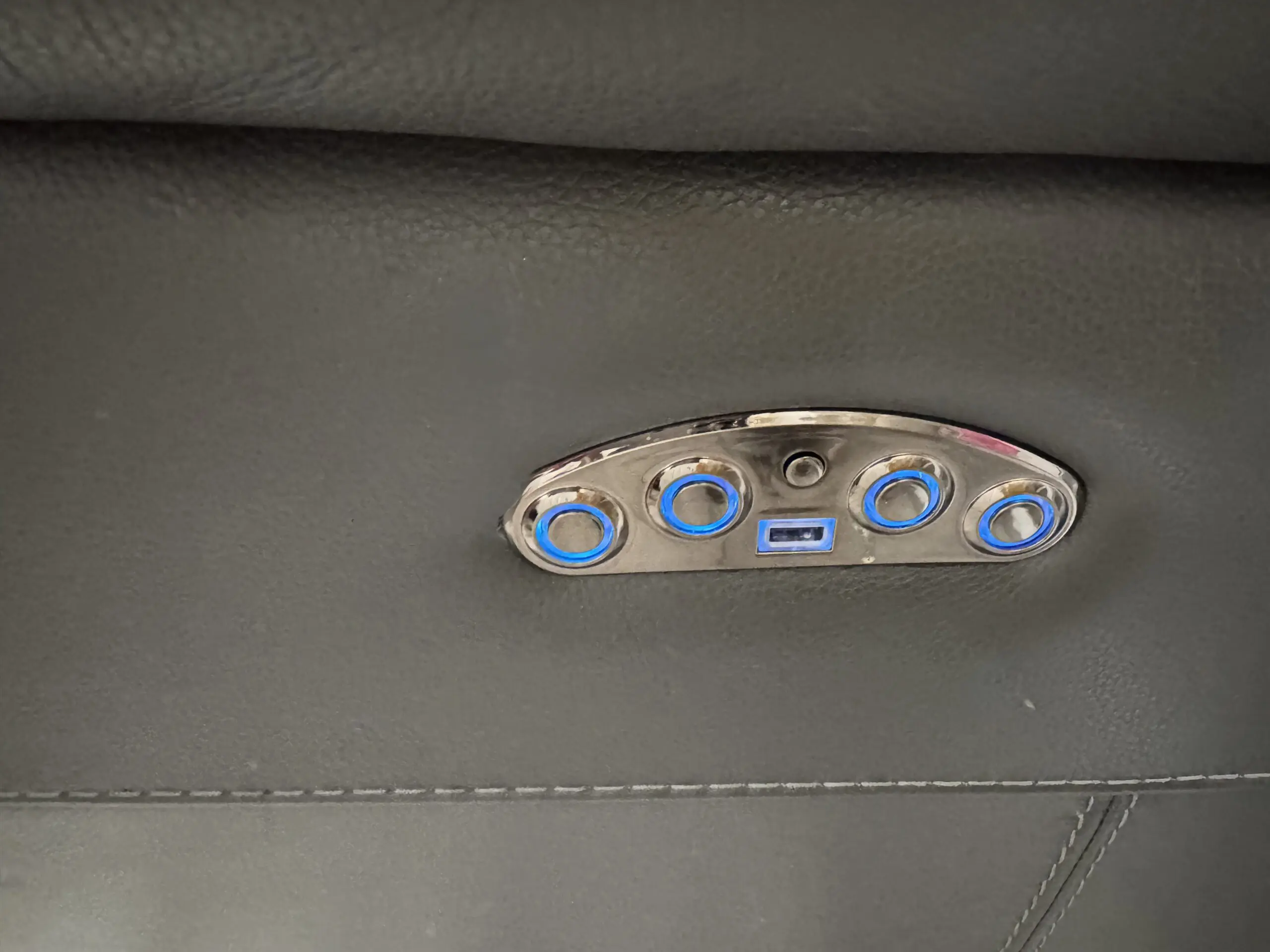 All electric and has charger ports at the end of every seat, one sofa has a console with cup holders and charger point inside,