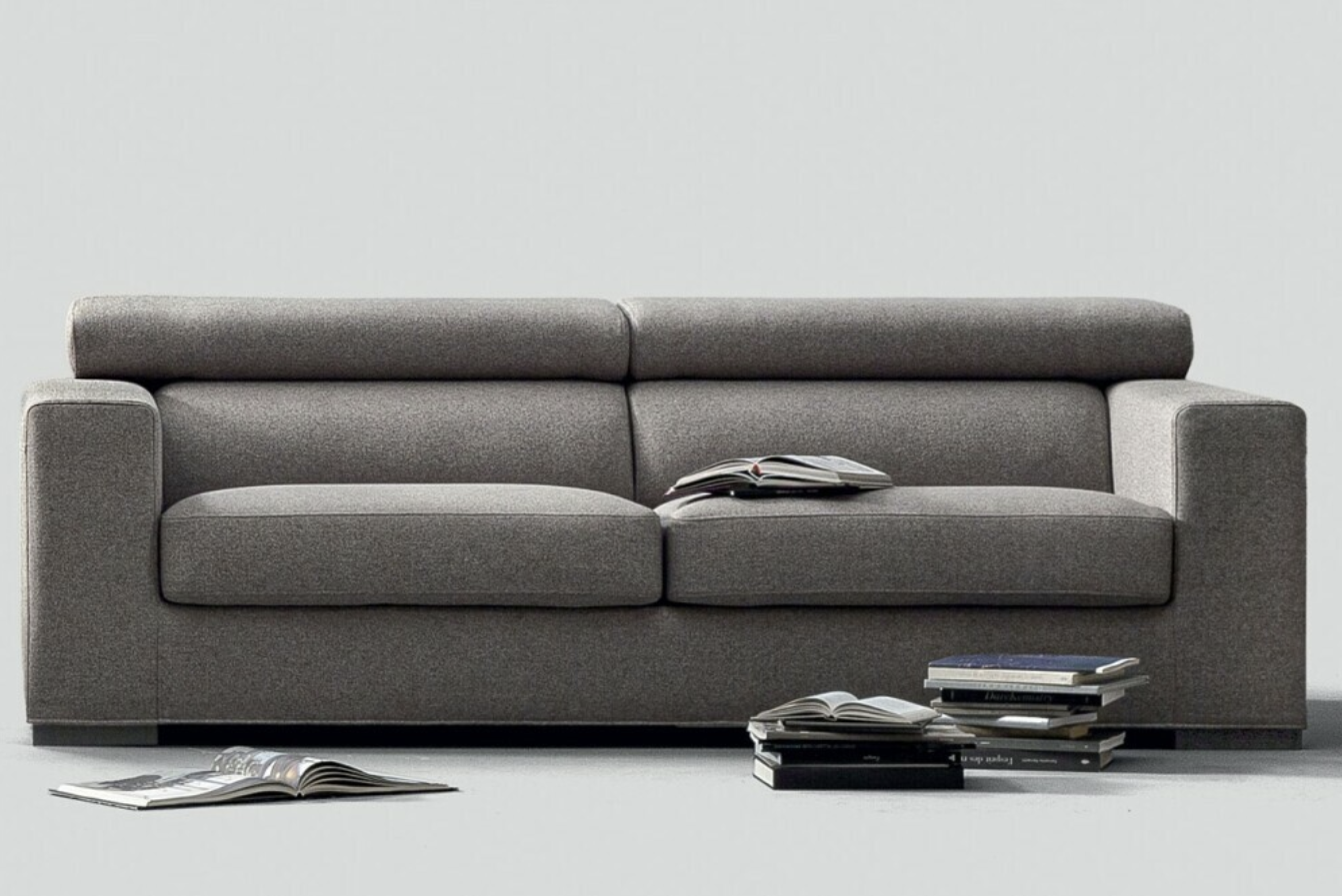 Stylish Italian Samoa Alter sofa (W188cm D105cm) in grey fabric with charcoal feet and unique adjustable headrest. 4 years old, great condition. RRP £1,550
