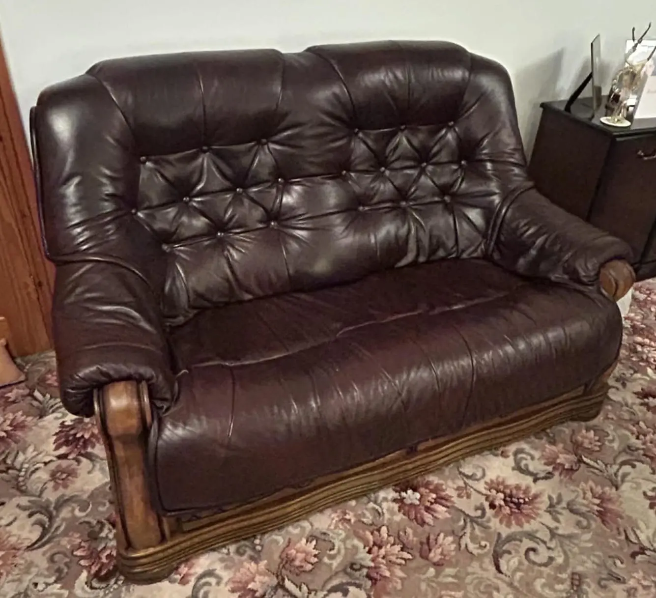 This elegant 2-seater sofa features distinctive button-tufted upholstery that adds a touch of traditional sophistication to any living space. The classic design includes deep comfortable seating with supportive arms and back cushioning, perfect for relaxing or entertaining guests. Built on a solid wooden base frame, this piece combines durability with timeless style. The traditional styling would complement both period and contemporary interiors beautifully.