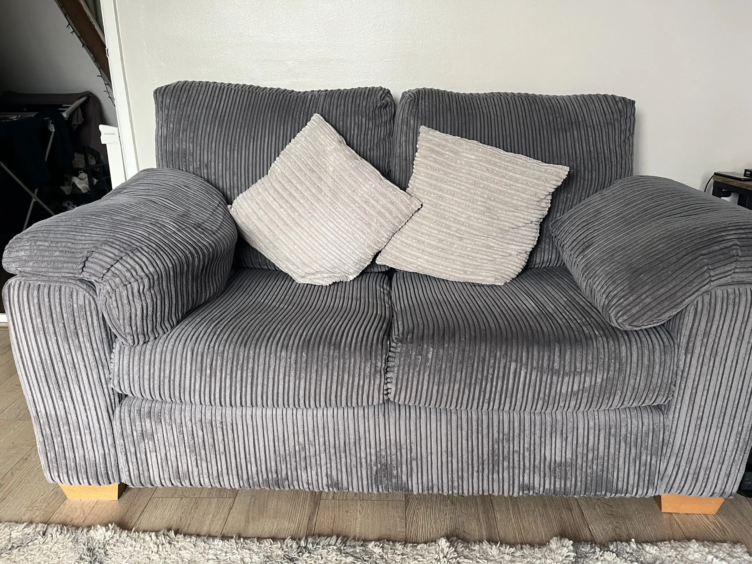 This sofa is a 2 seater as part of the SCS Ross range. It is approximately 2 years old and has no marks or stains. It is in good condition but has been used over the last 2 years so is not like new.