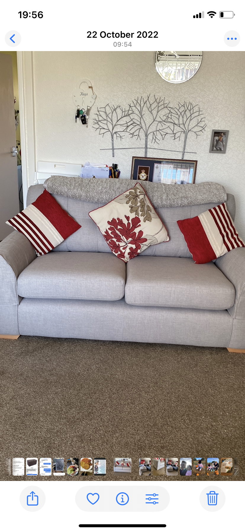 Bought this Zika 2 seater sofa with arm caps from scs had it in my little bungalow for 6 months it was too big for my lounge made it look smaller than it is . Had it wrapped in a king size heavy duty mattress bag sealed up raised off the floor on pallets in my Garage .