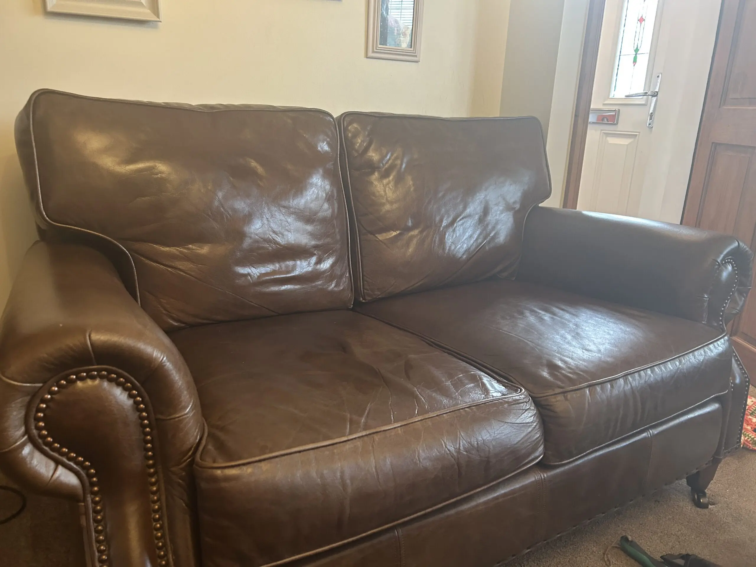 Lovely Small 2 seater Hepburn sofa in brown aniline leather. Only 2 1/2 years old. Change of decor forces sale. You can still order this sofa for £1749.00