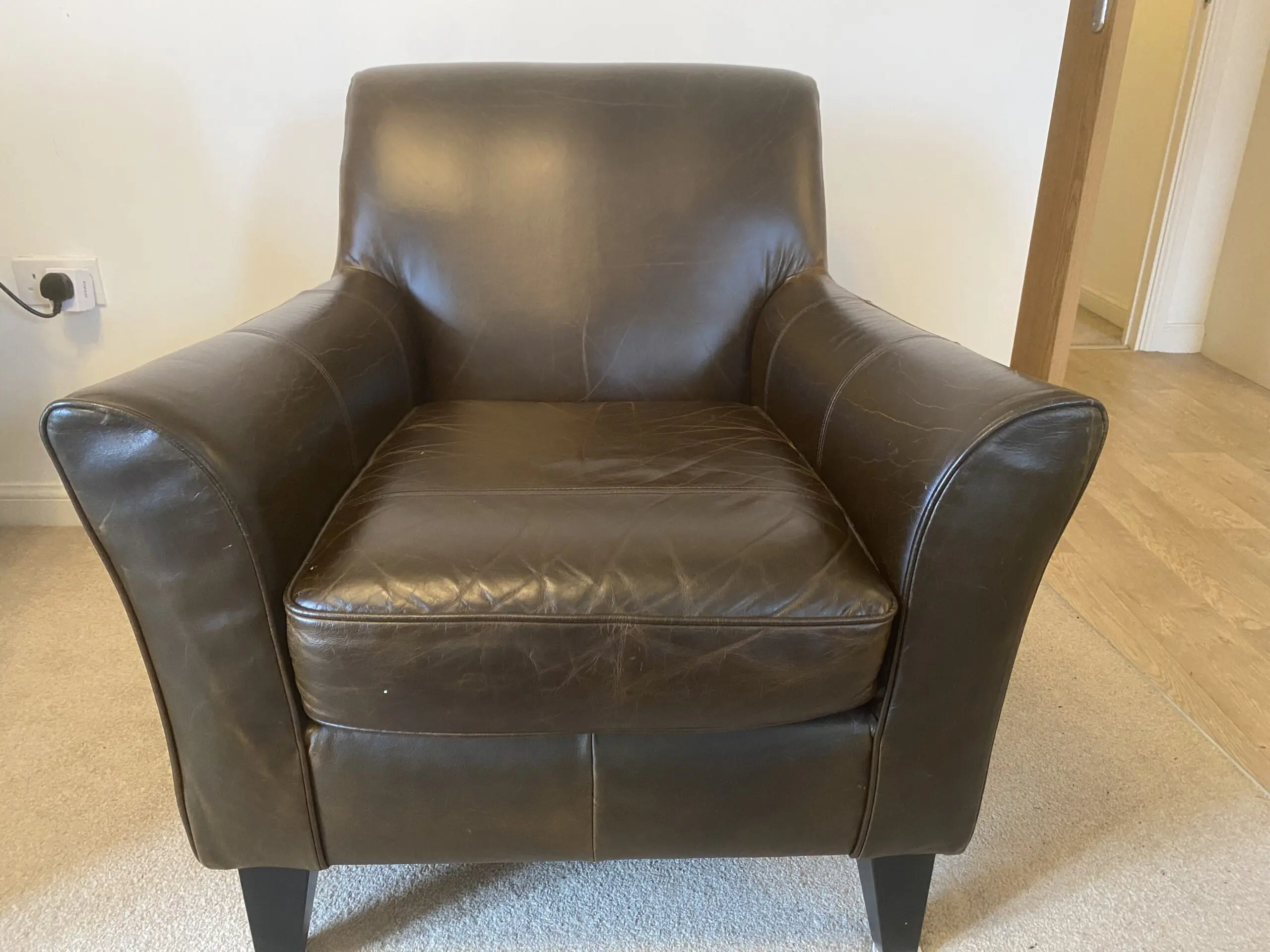 Leather armchairs in dark brown from Next, used but in excellent condition with no marks or tears.