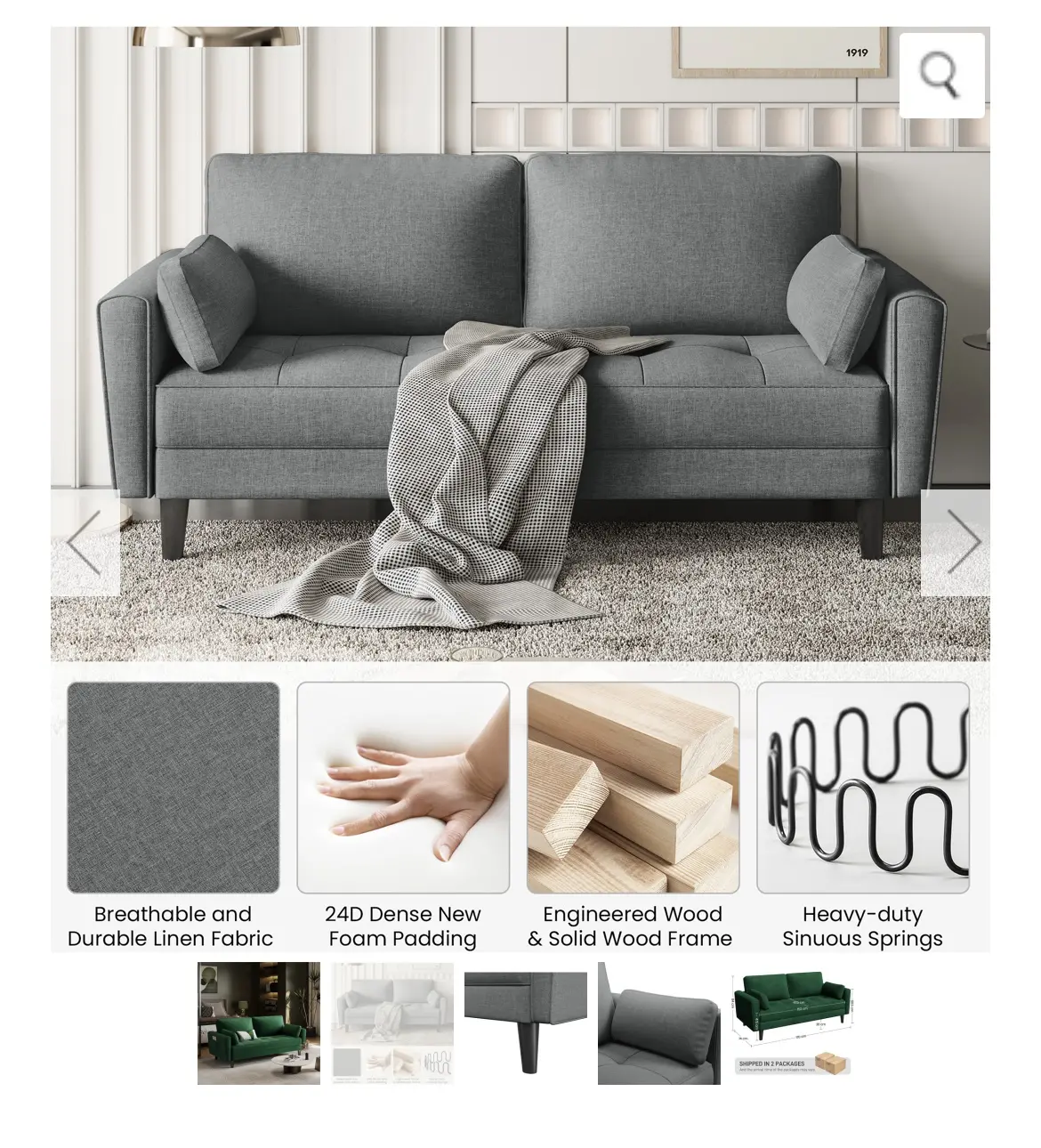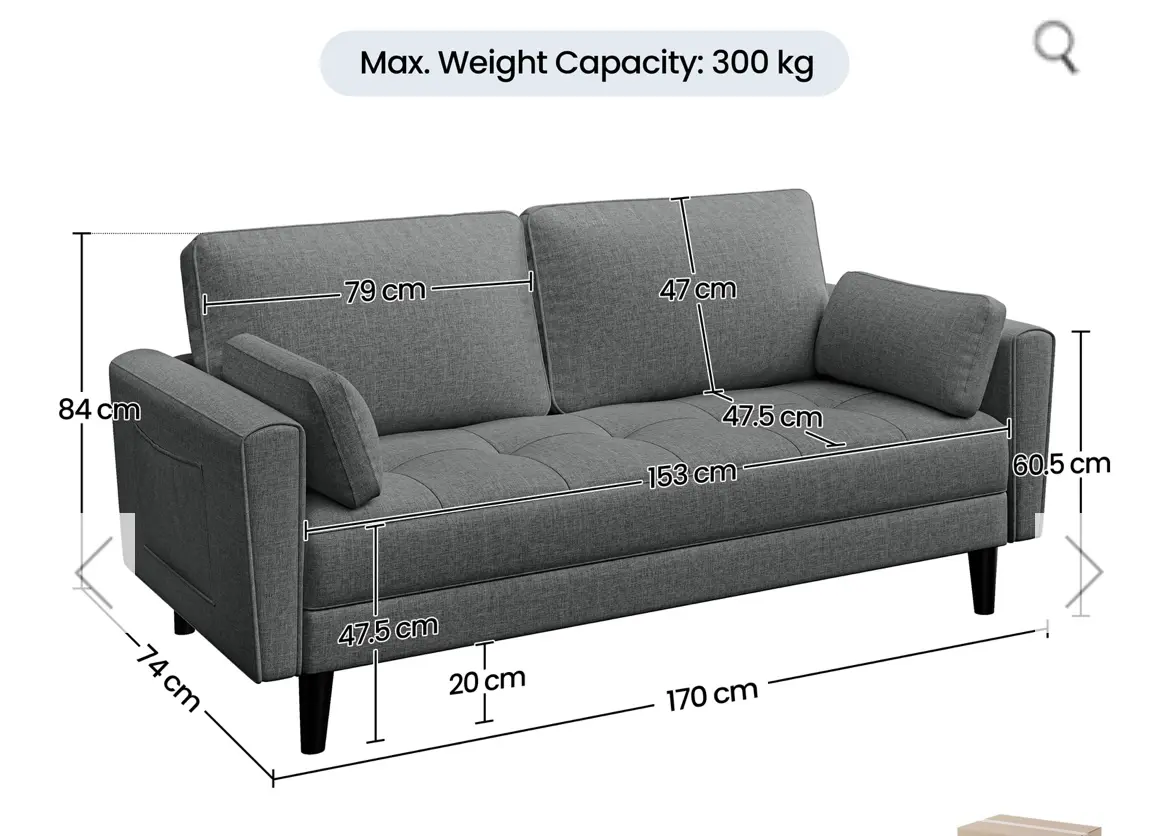 2 seater sofa with 2 big and 2 small cushions. Bought in July-25 from Range, so its like new. Cushion covers are removable and washable.