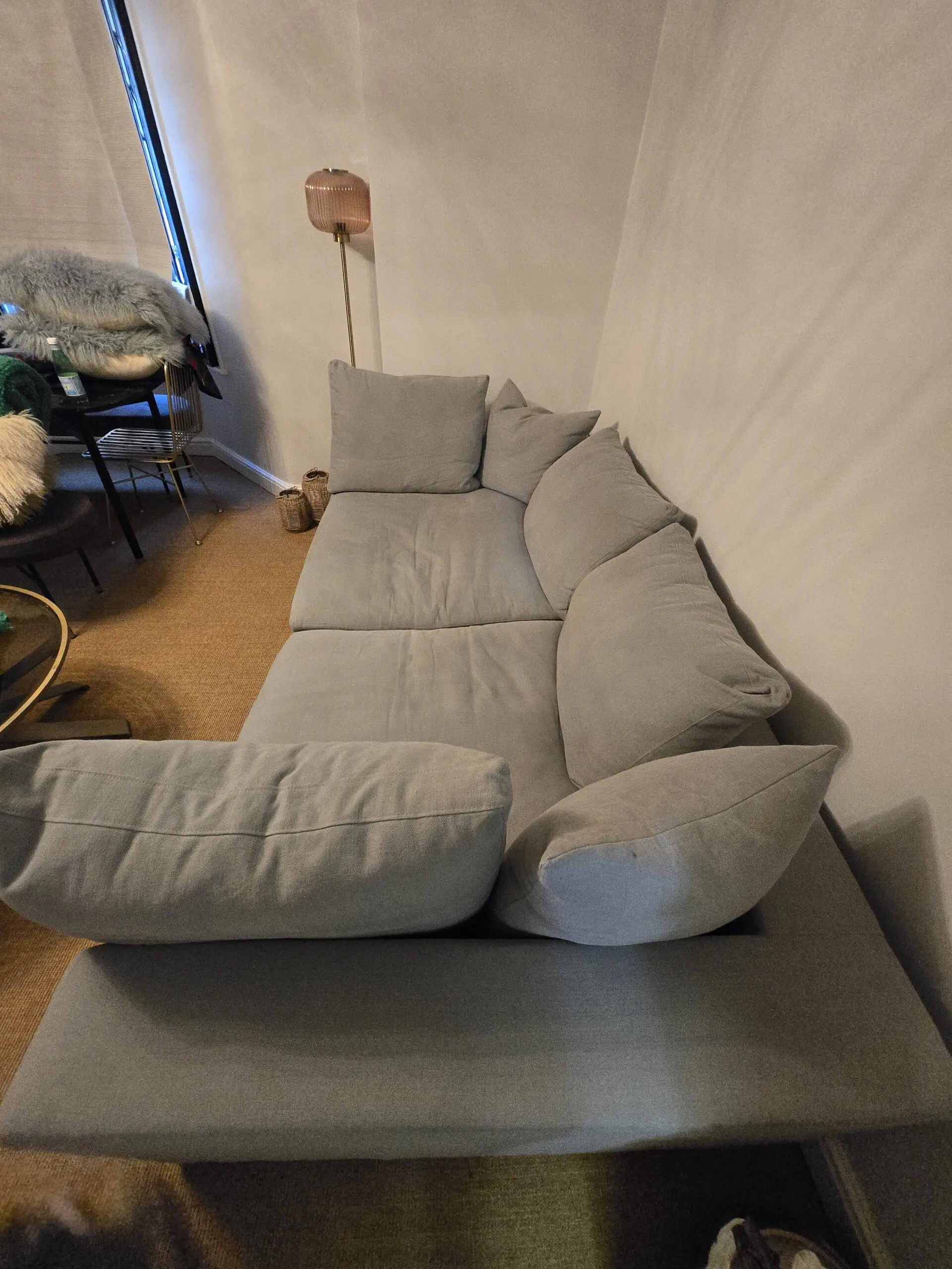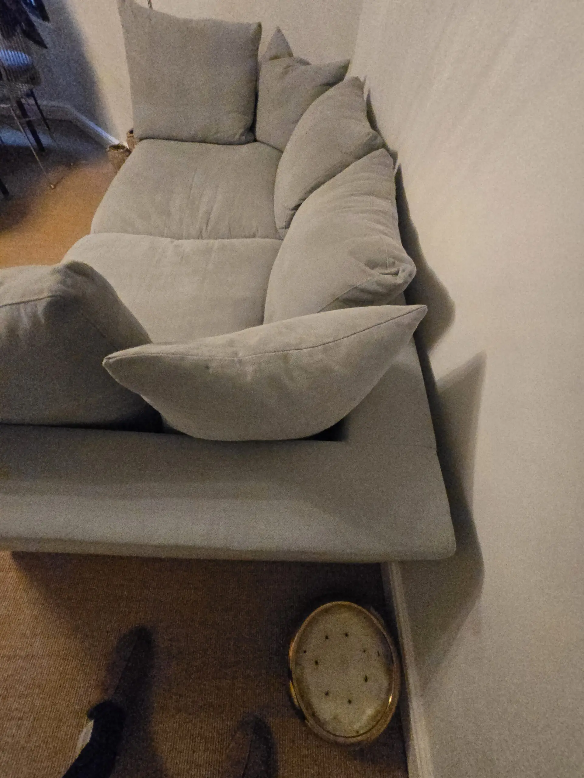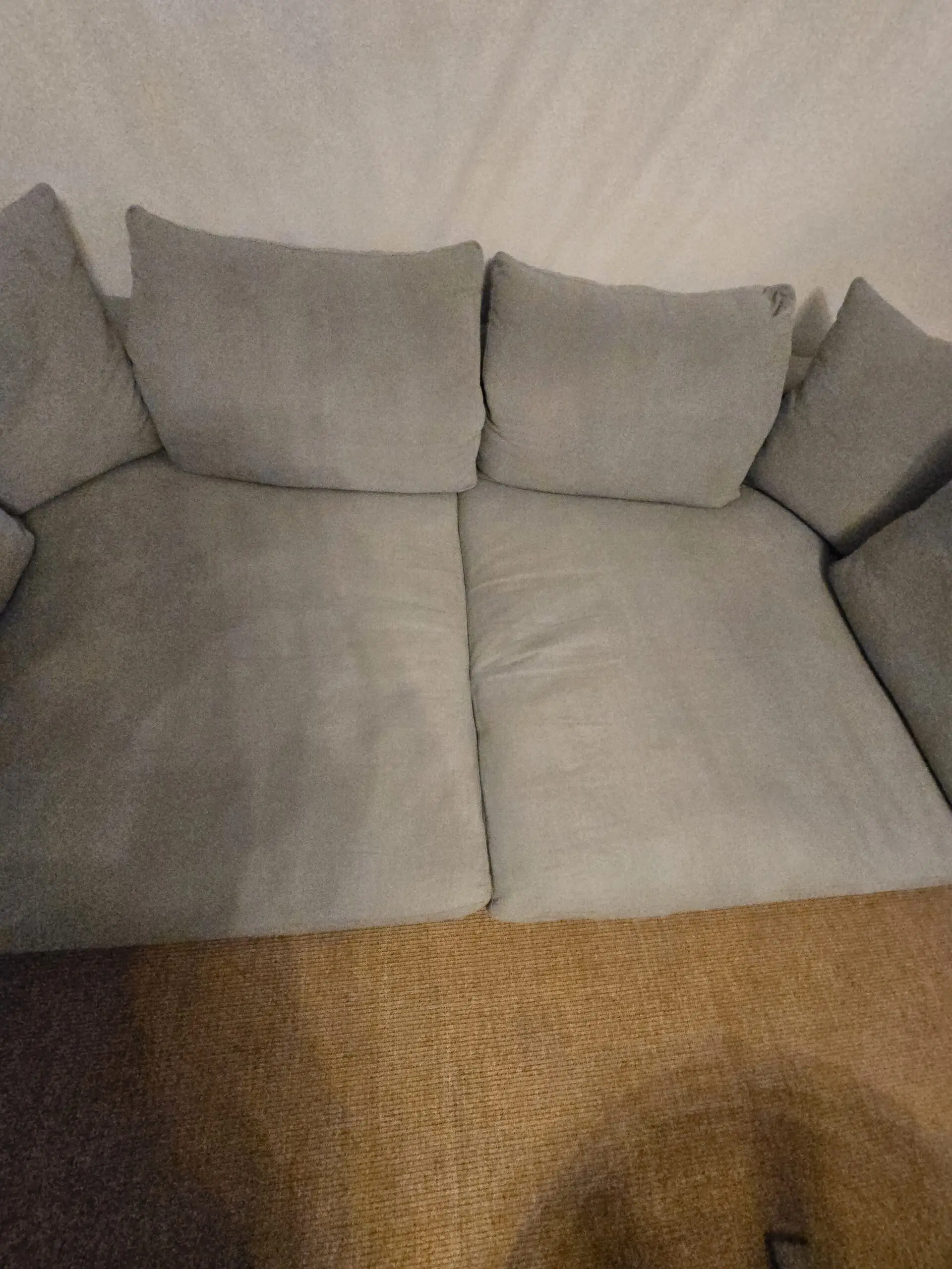 Good condition with removable washable covers, feather filled cushions. The sofa is fairly new and clean