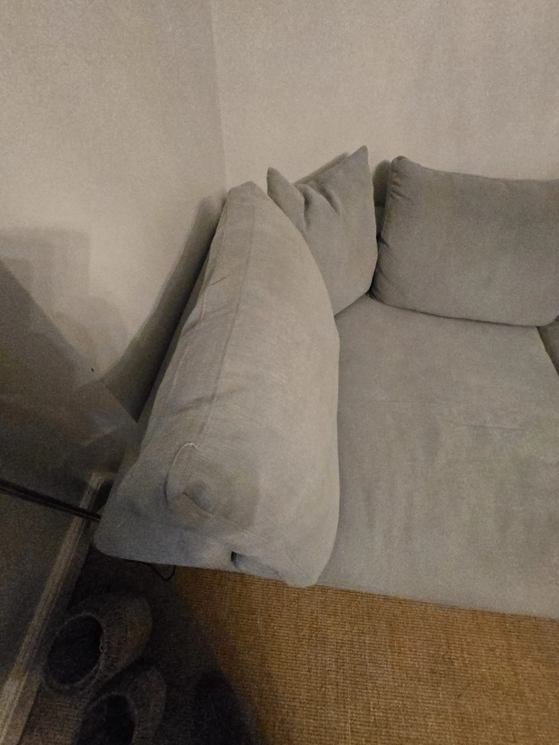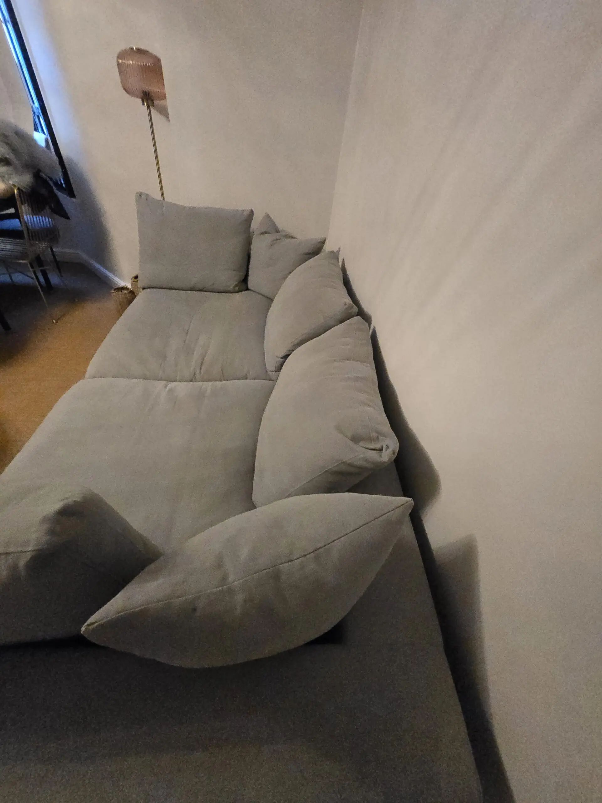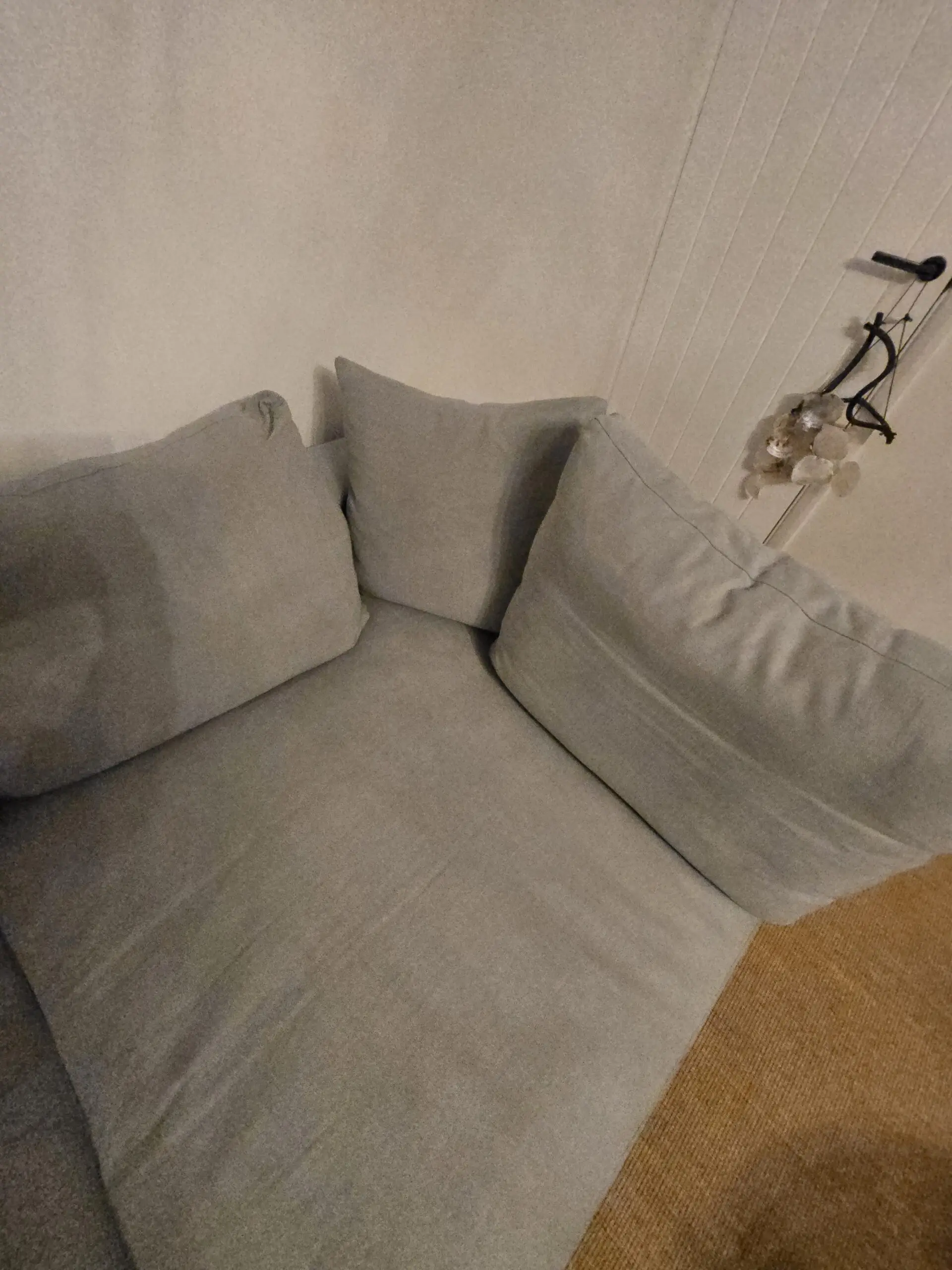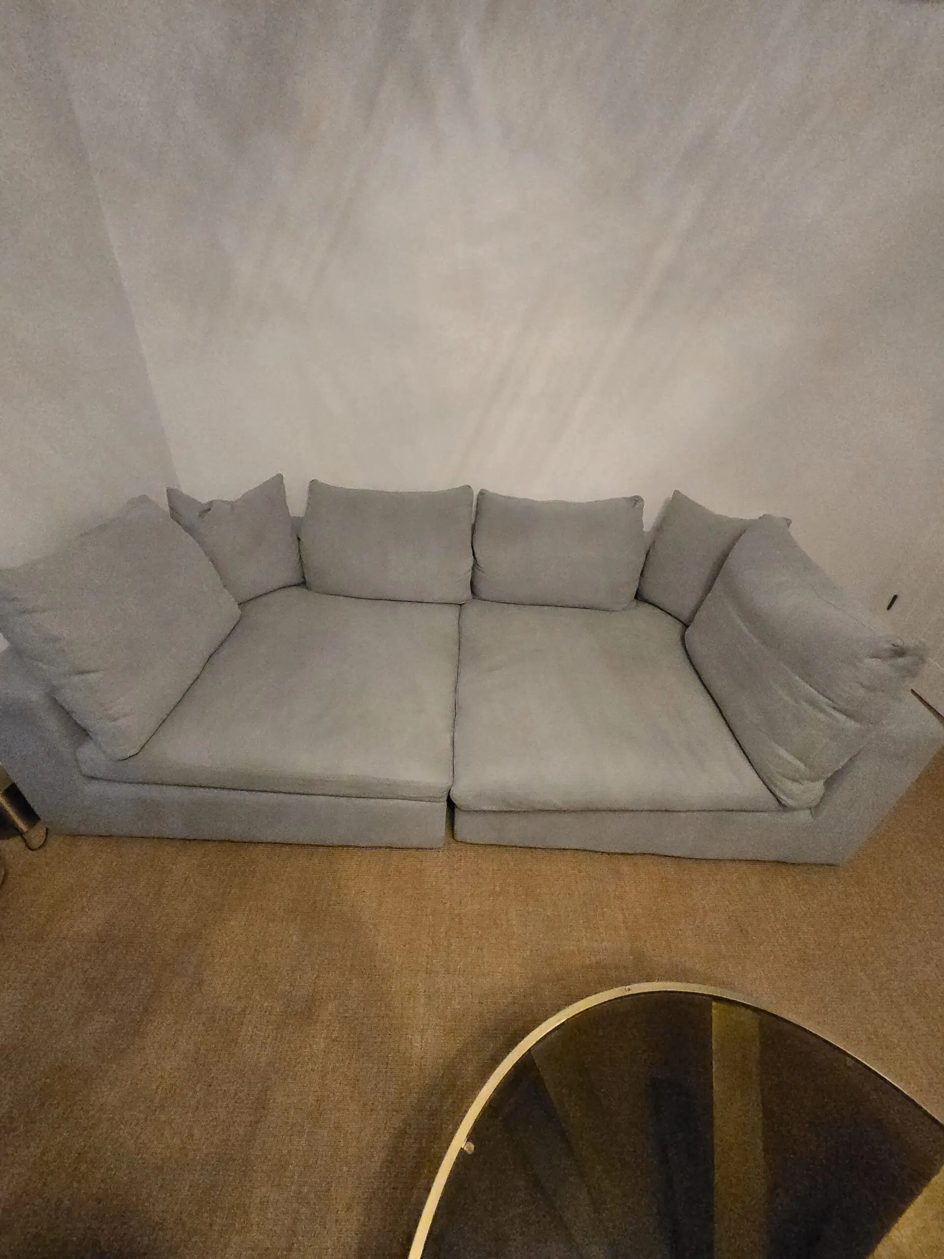 Good condition with removable washable covers, feather filled cushions. The sofa is fairly new and clean