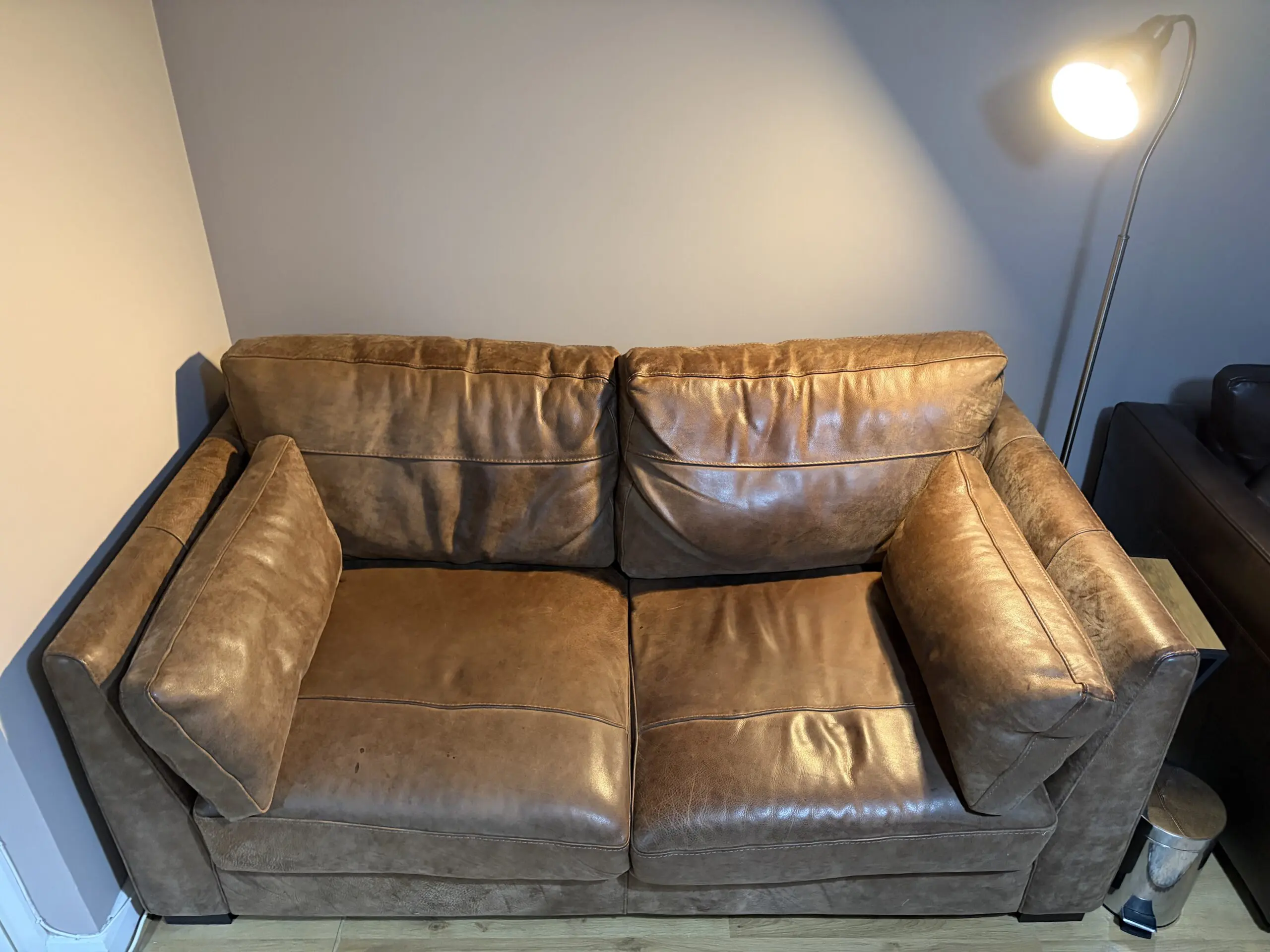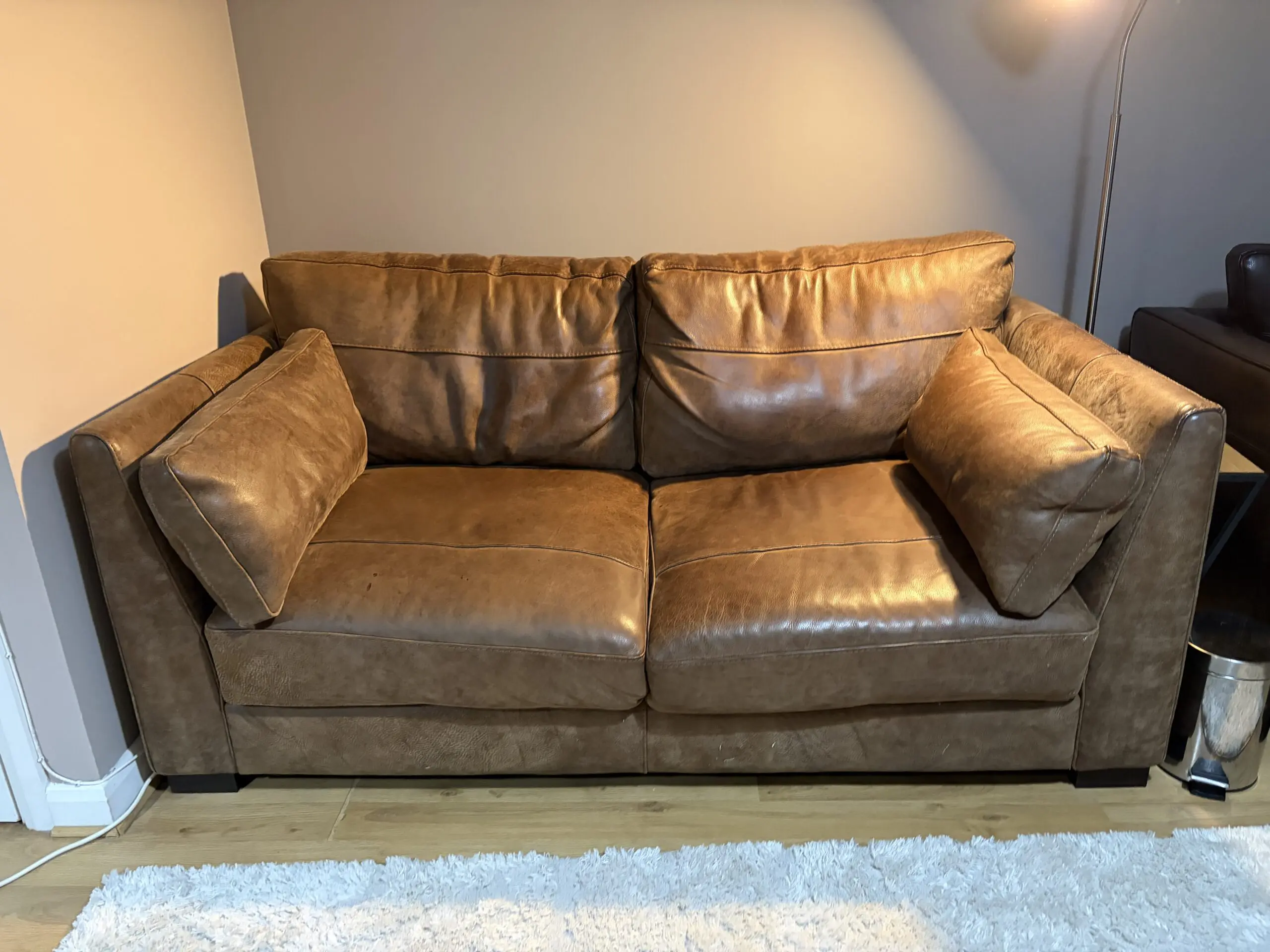 Sofology carter two seater brown leather sofa, great condition with a few slight marks as shown in the photos