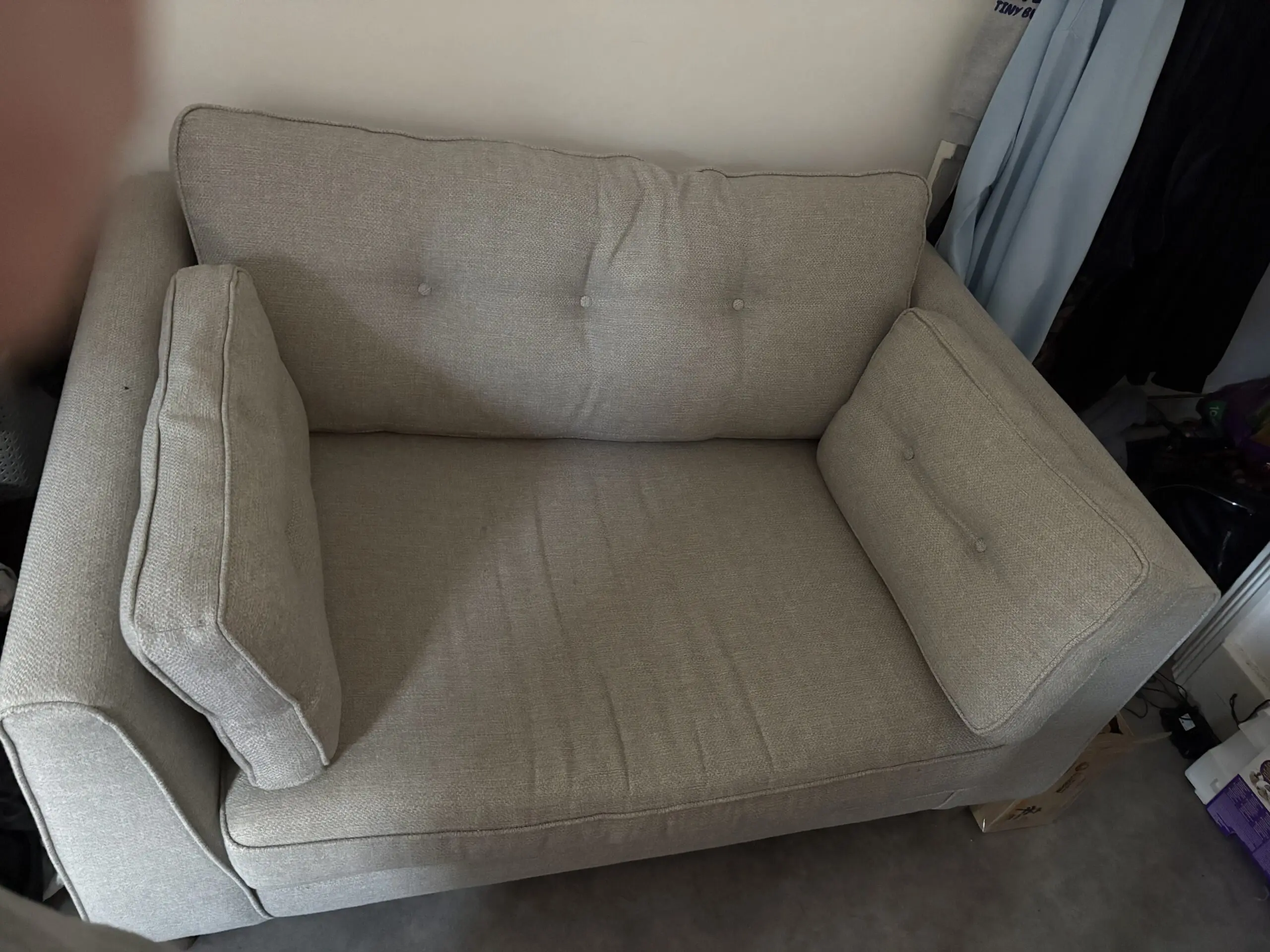 Very comfortable. It’s been sat in our dining room as it didn’t fit in the front room when we purchased it. In brand new condition. Can fit 2 people on it