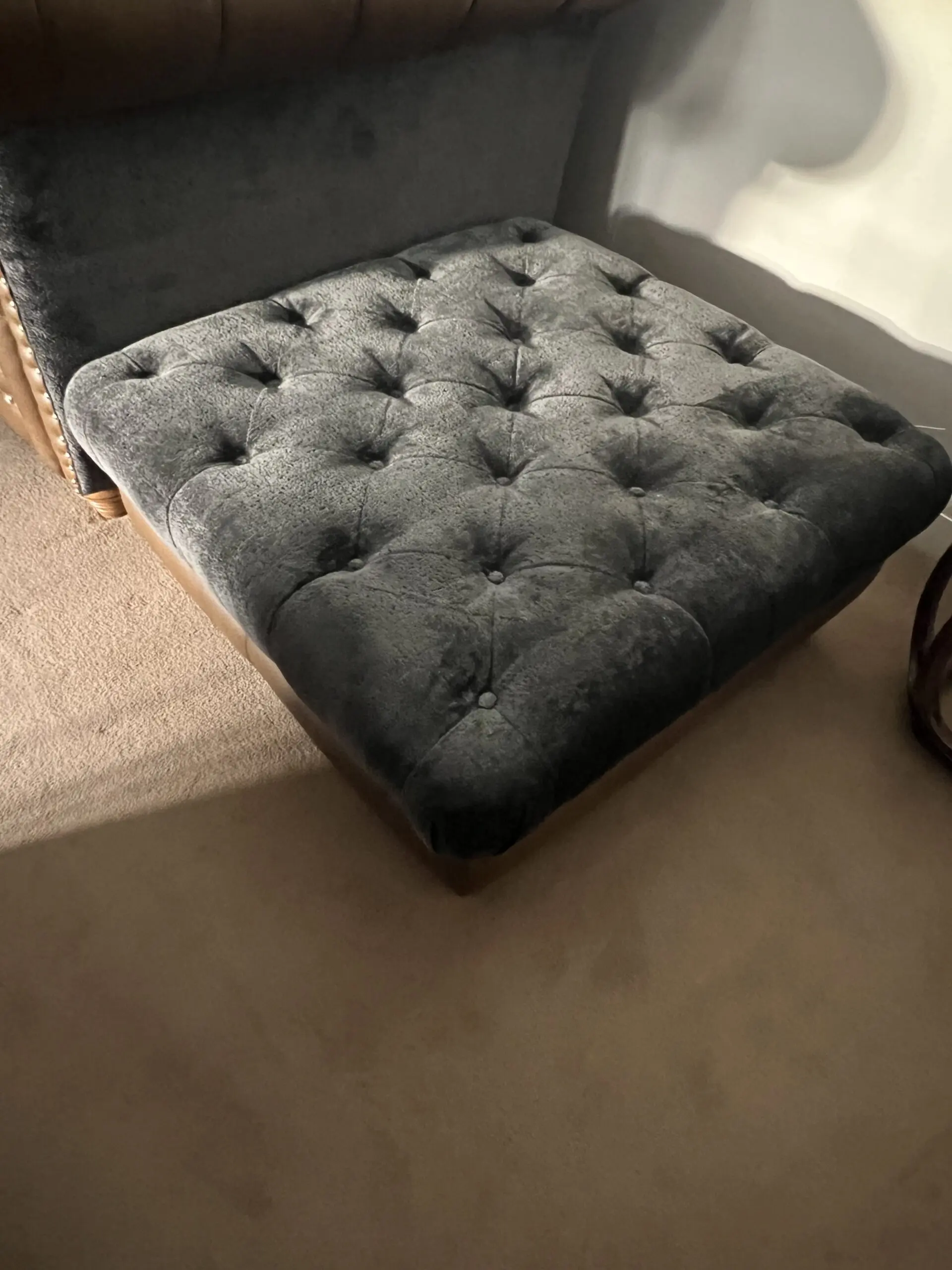 The Sofology Persia footstool is a luxurious, traditionally designed piece featuring deep buttoning, hand-turned wooden feet, and stud detailing. Designed to match the Persia sofa range, it is available in soft, supple leather or sumptuous velvet, offering a classic, vintage feel for, or as part of, a living room set.