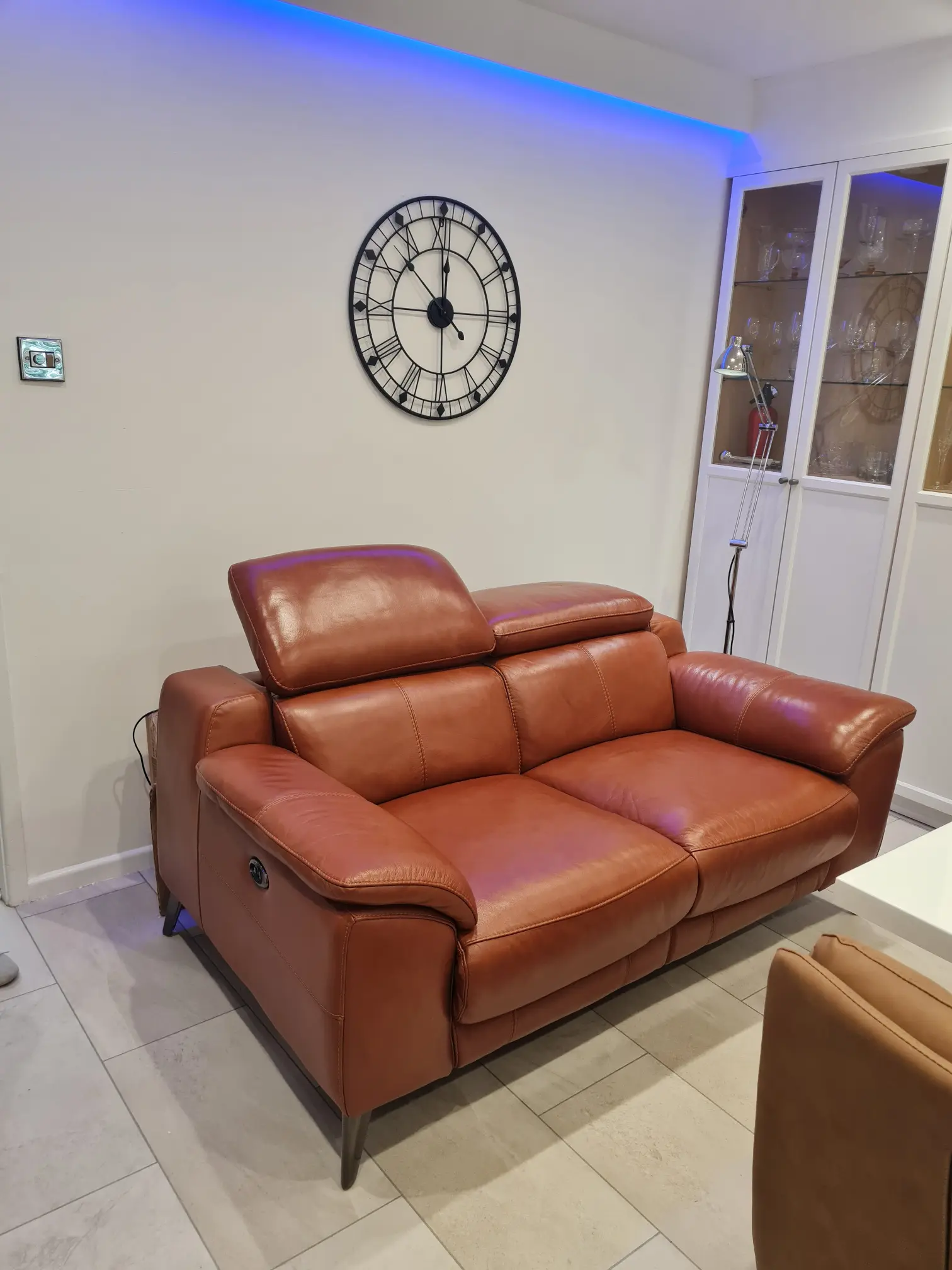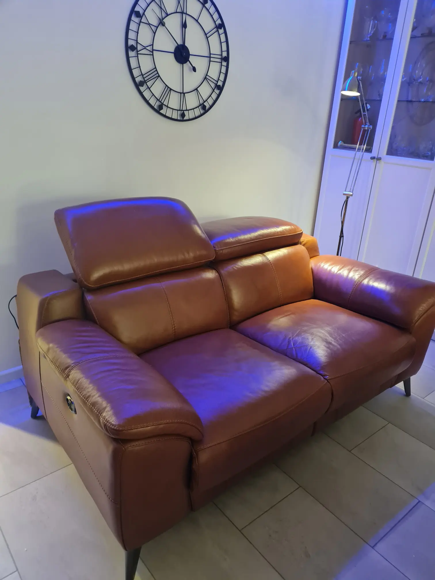 Excellent condition. Hardly been used. Power recliner real leather 2 seater sofa