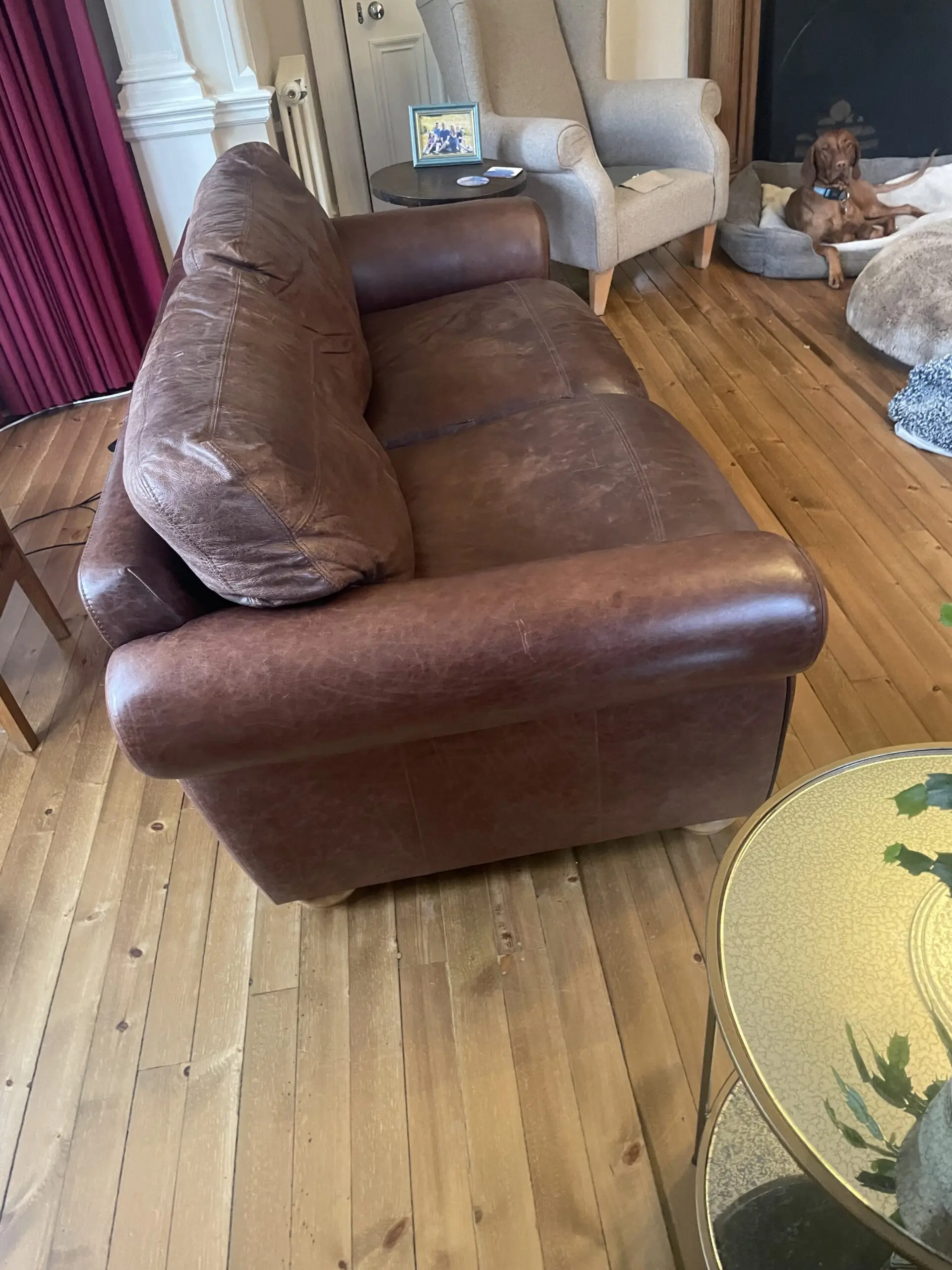 Beautiful leather sofas is great condition given their age. Have been regularly treated.