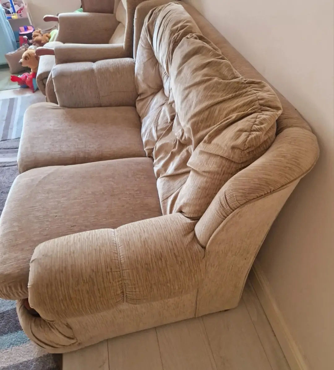 The sofa and chair I bought was as described by the seller - excellent condition. Delivery was quickly arranged and without any incidents. I was kept well informed of the delivery time on the day. Highly recommended.