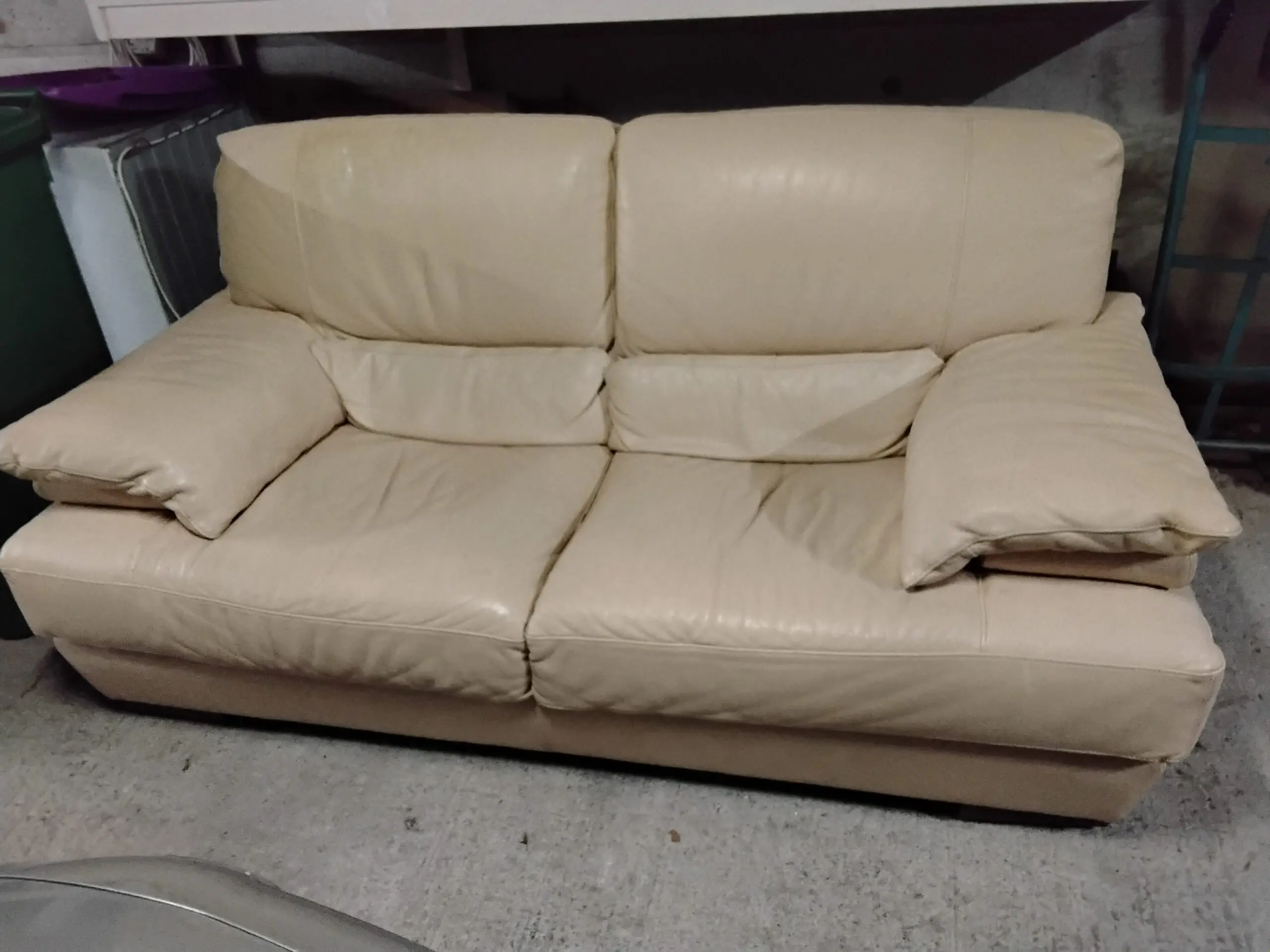 Two seater cream Italian leather sofa
