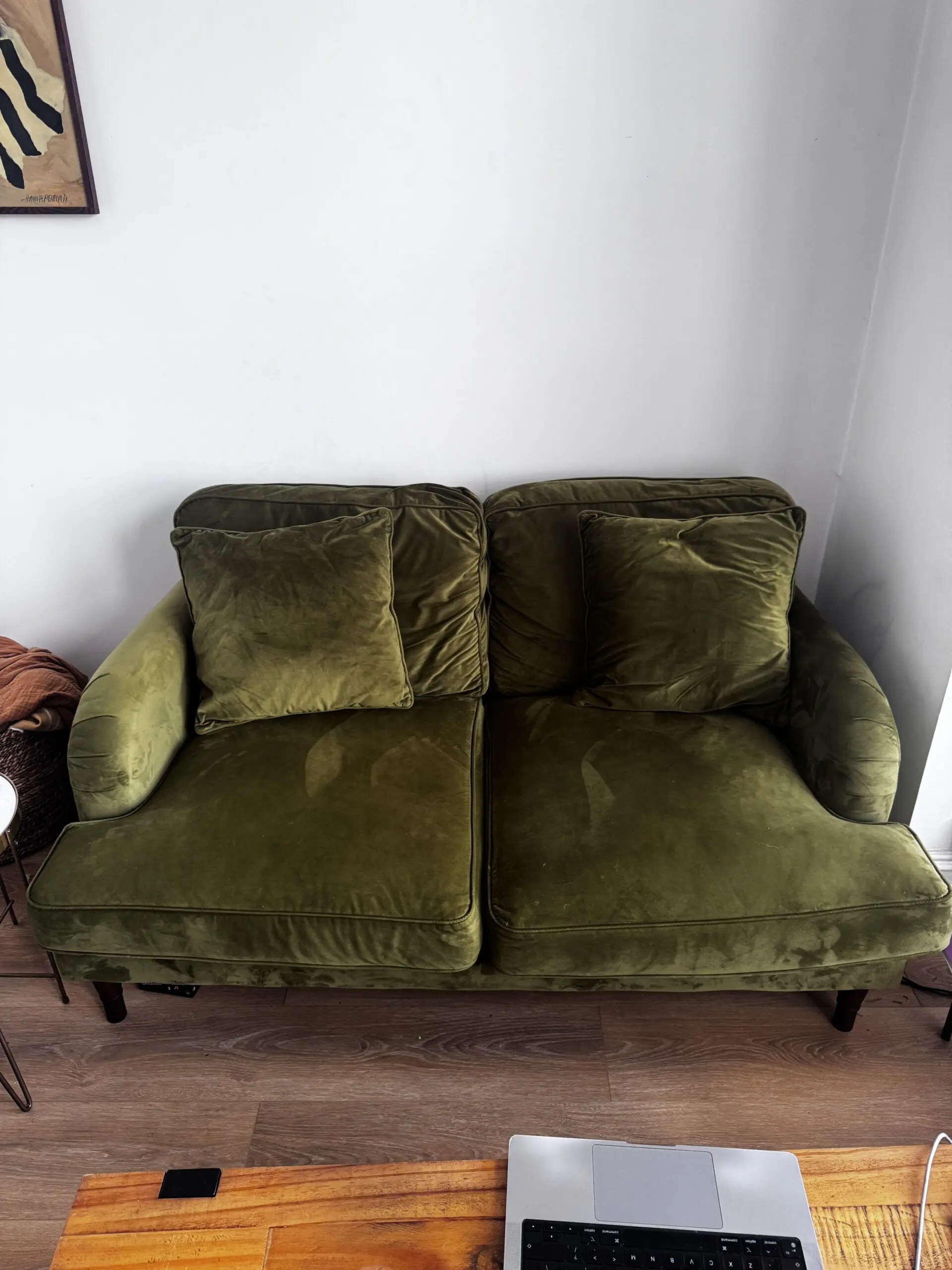 VELVET GREEN OLIVE 2 SEATER SOFA FURNITURE 123