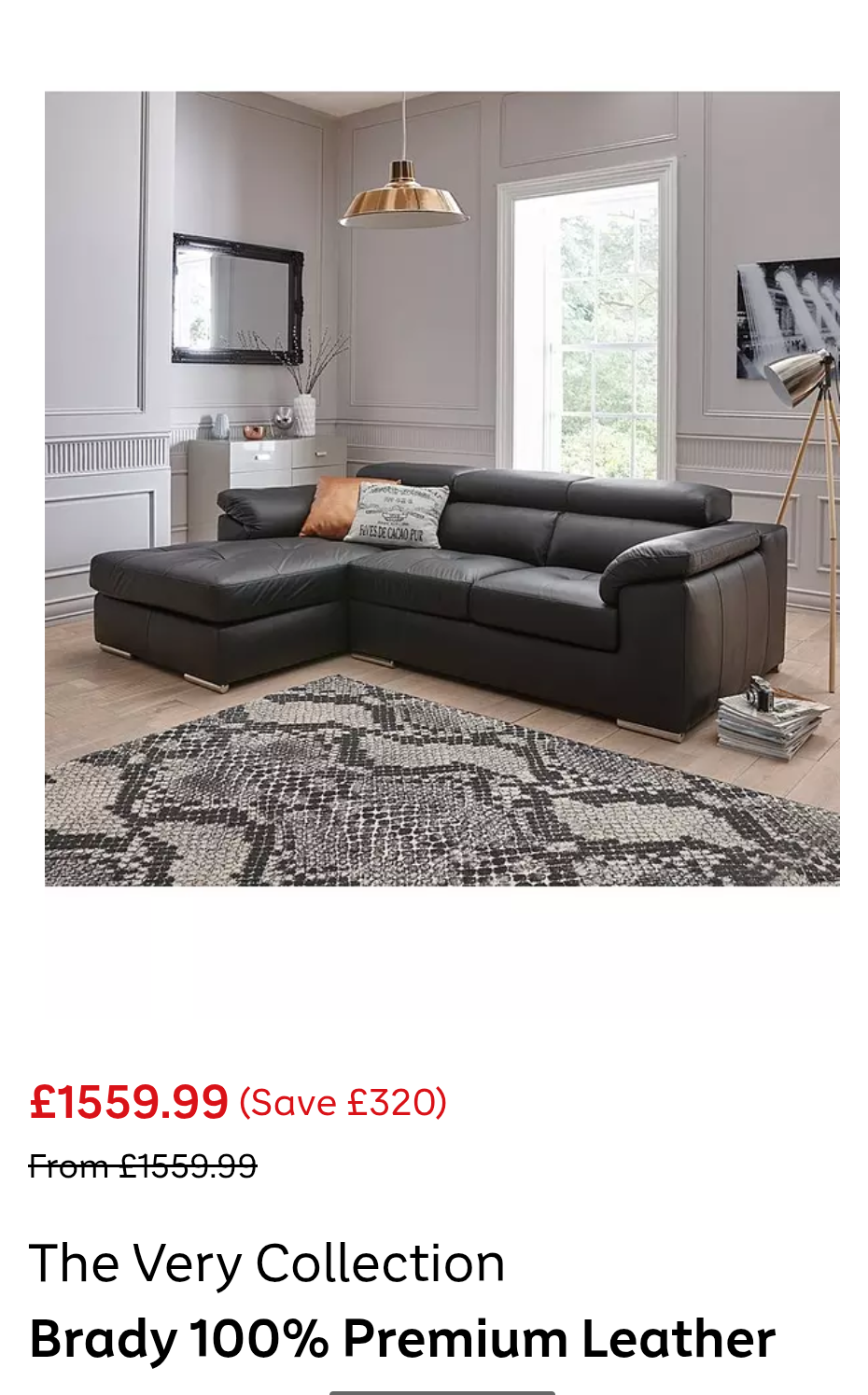 The Very Collection Brady 100% Premium Leather 3 Seater Left-Hand Chaise Sofa – FSC® Certified | Littlewoods