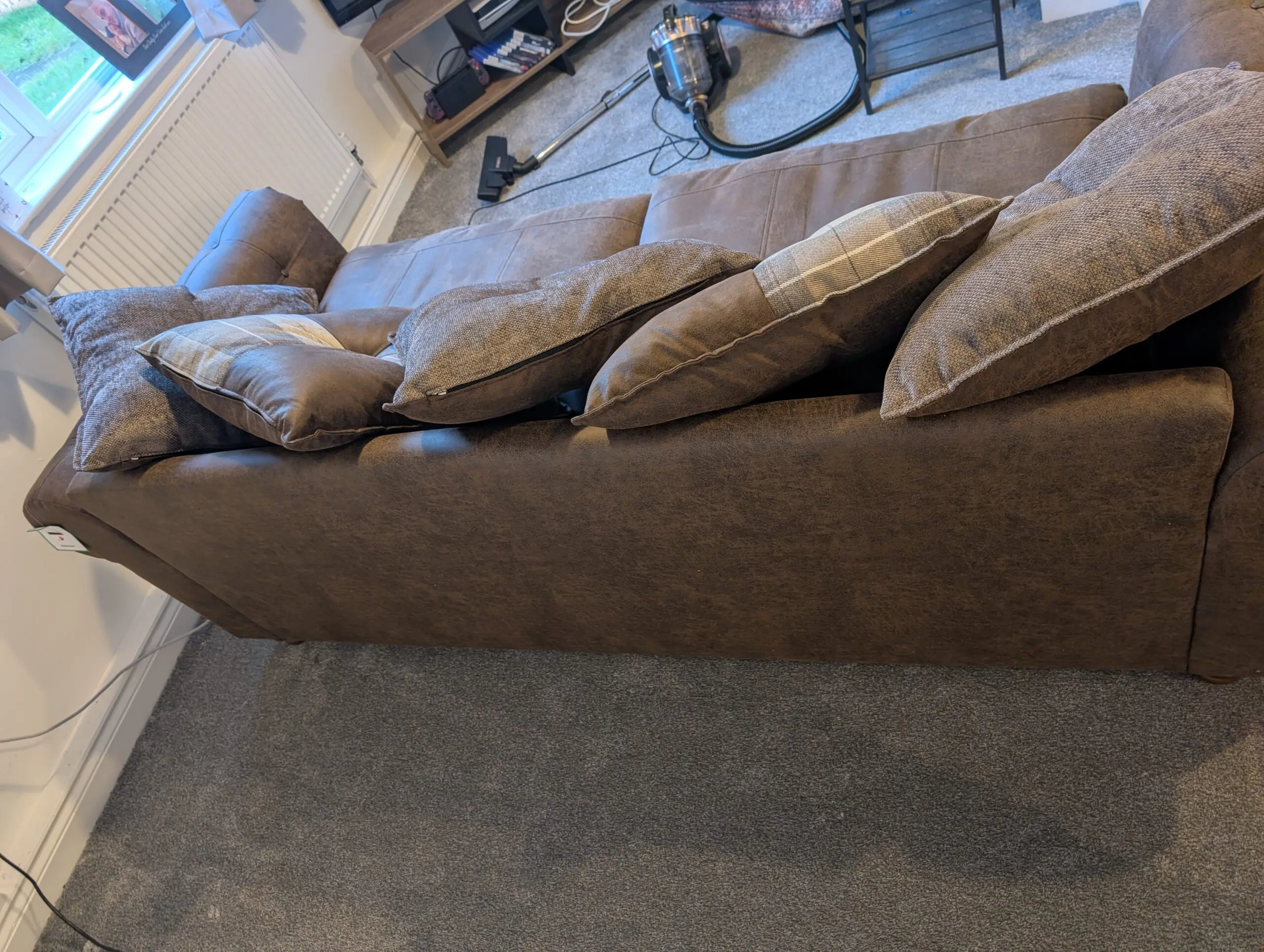 Has had no pets on it, nothing spilt and is in perfect condition. No rips, tears or scuffs.