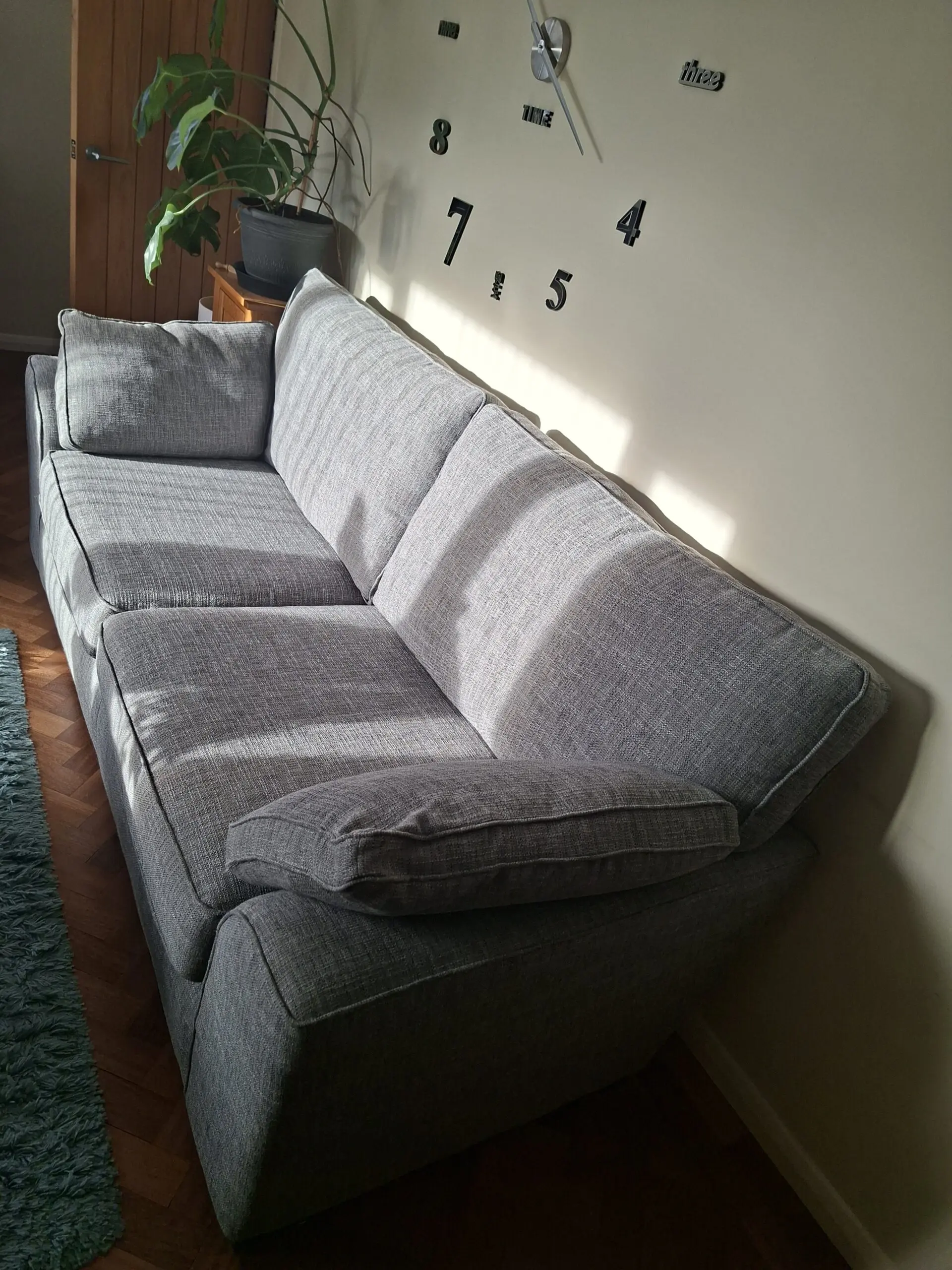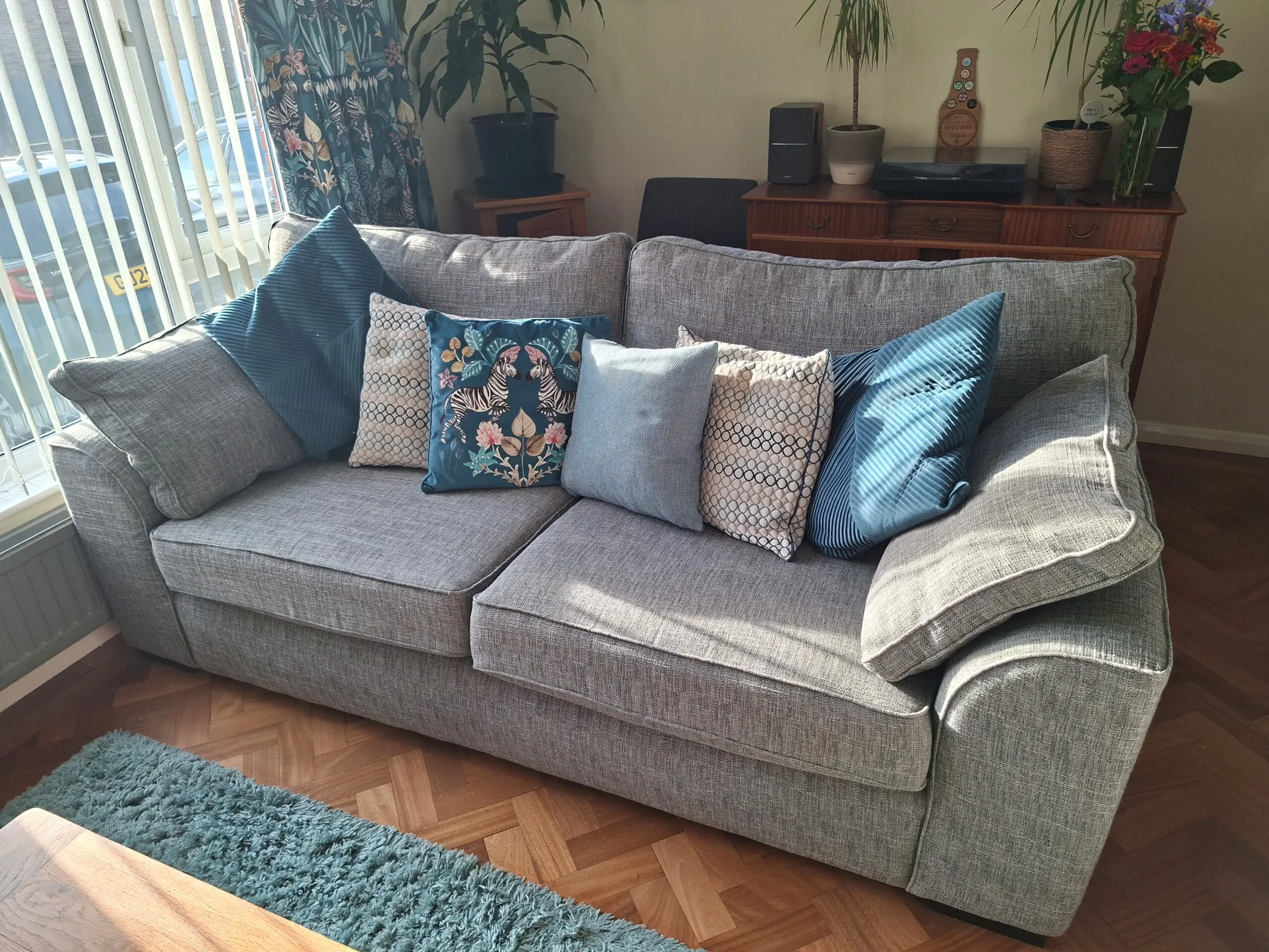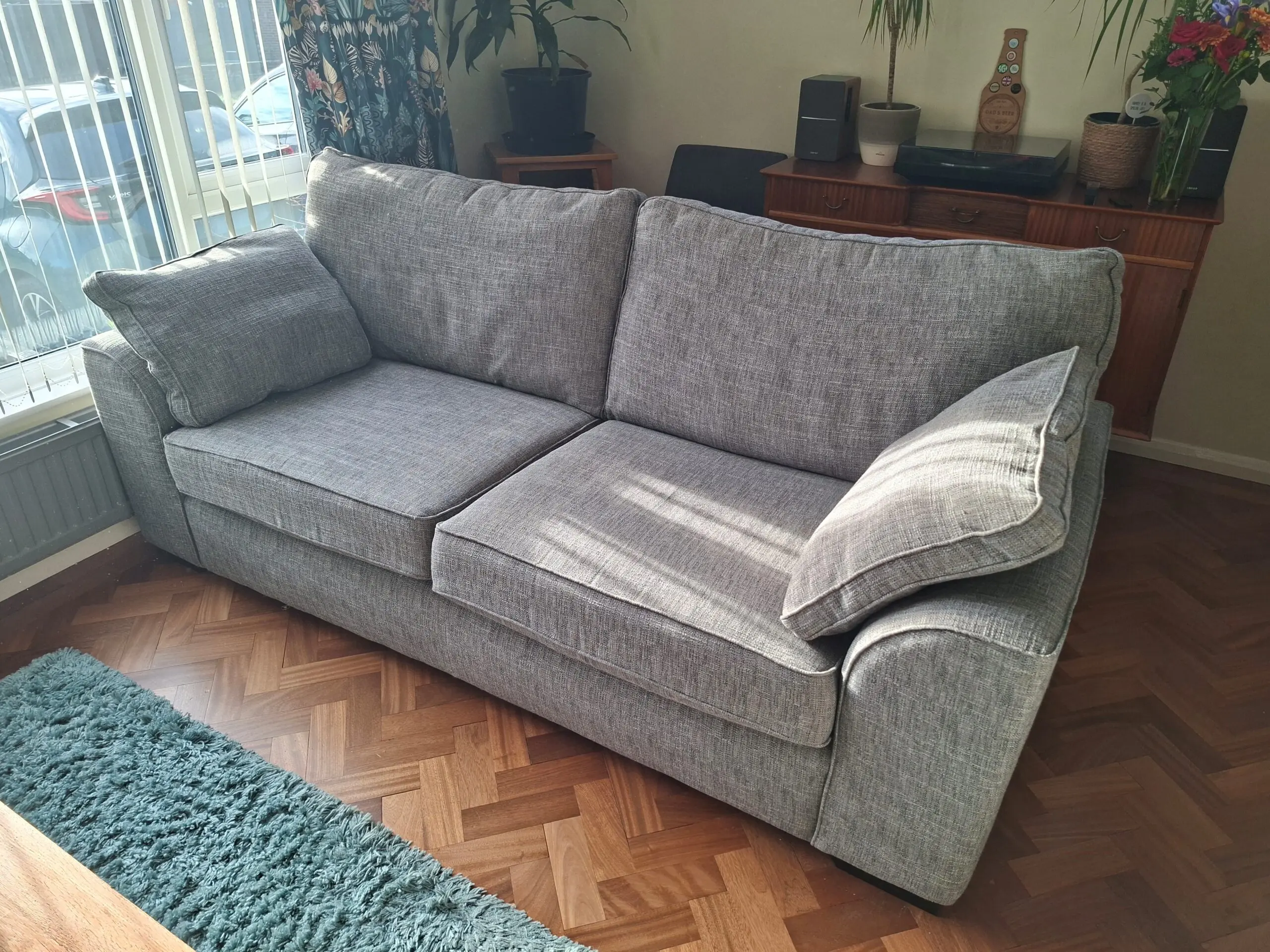 In fantastic condition we are selling 2 x identical 3 seater dark grey sofas with dark wood feet from Next. Reason for sale is we have new sofas being delivered. Approx 6 years old but very well looked after from a pet, smoke & child free home. No stains or pulls in material and the fire resistant tags are still attached to the backs.