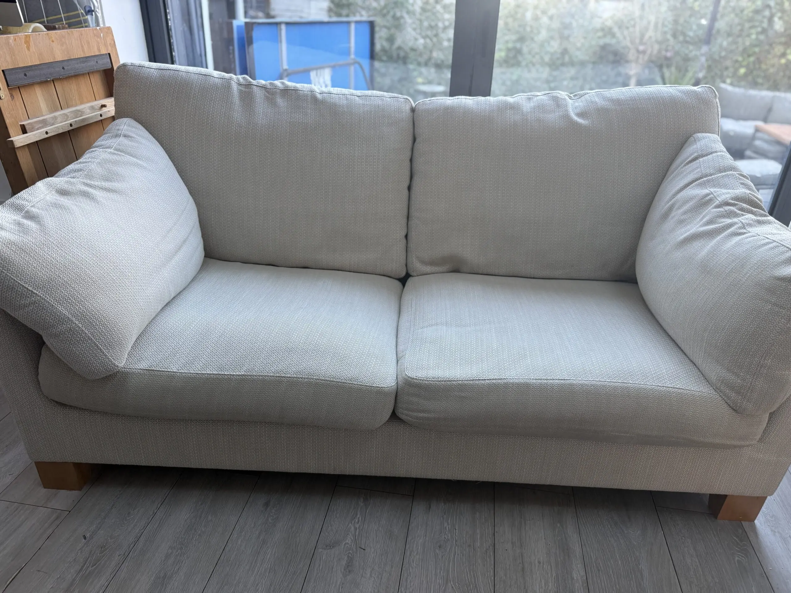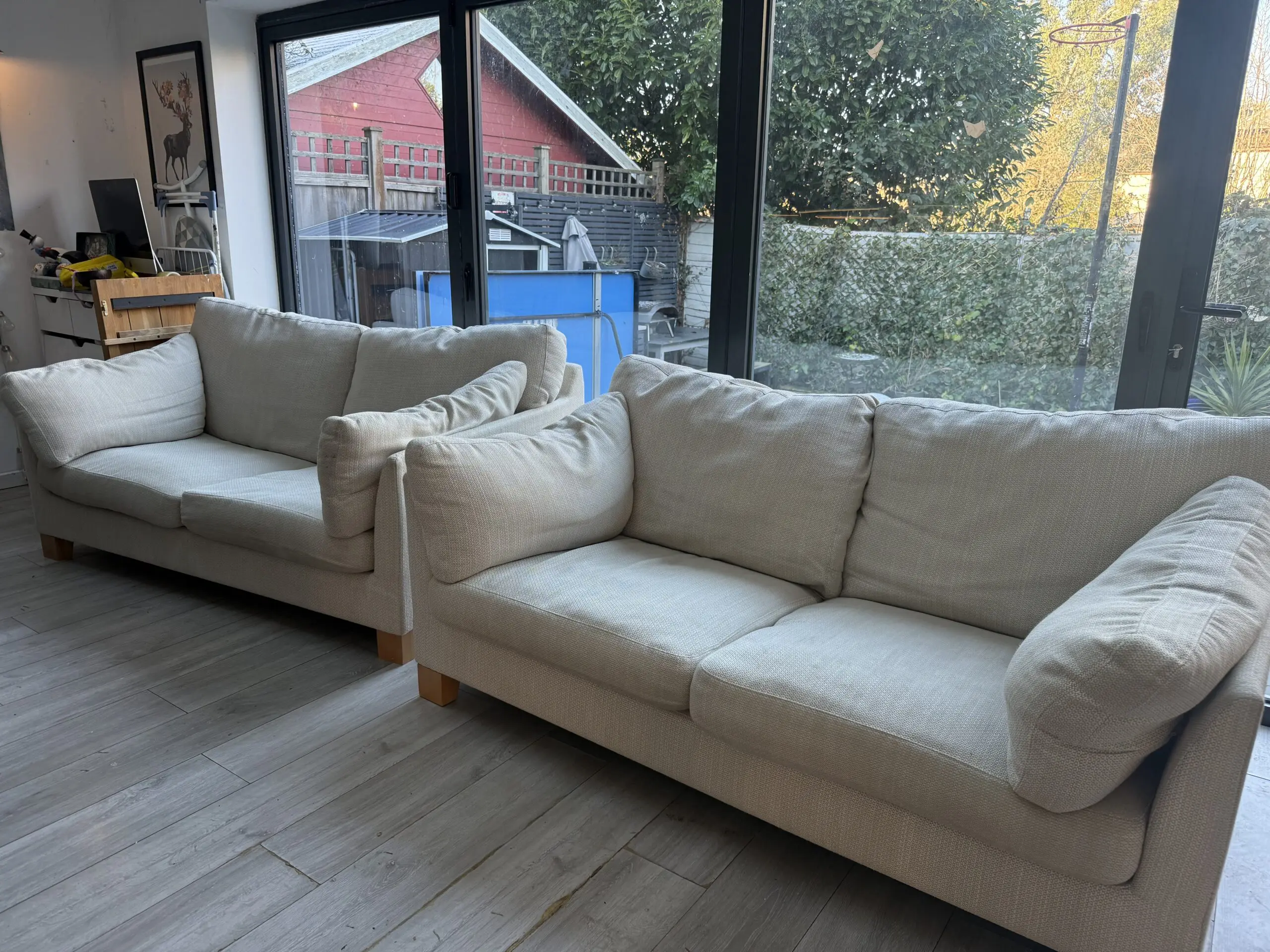 2 ikon sofas from John Lewis in great condition, small marks that’s are barely noticeable but as you would expect but look in great condition overall. They are very comfortable! And made from a natural weave fabric