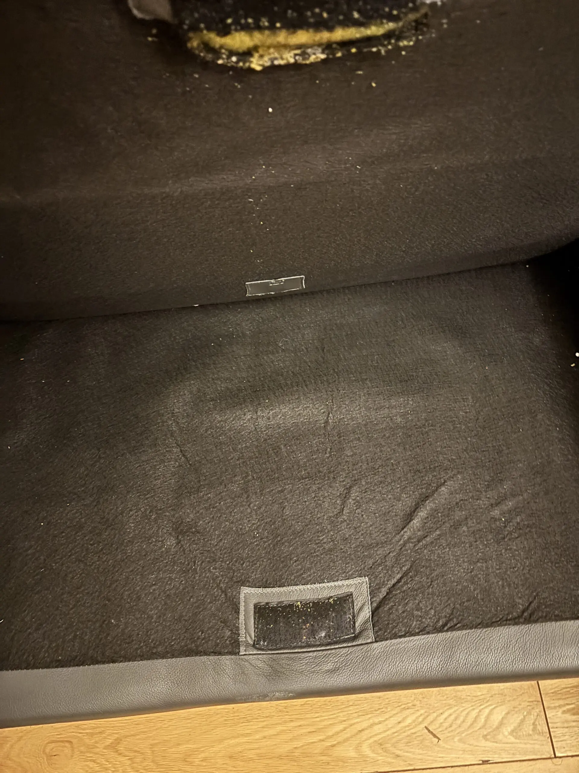 Small tear/broken clip on underside of 1 cushion