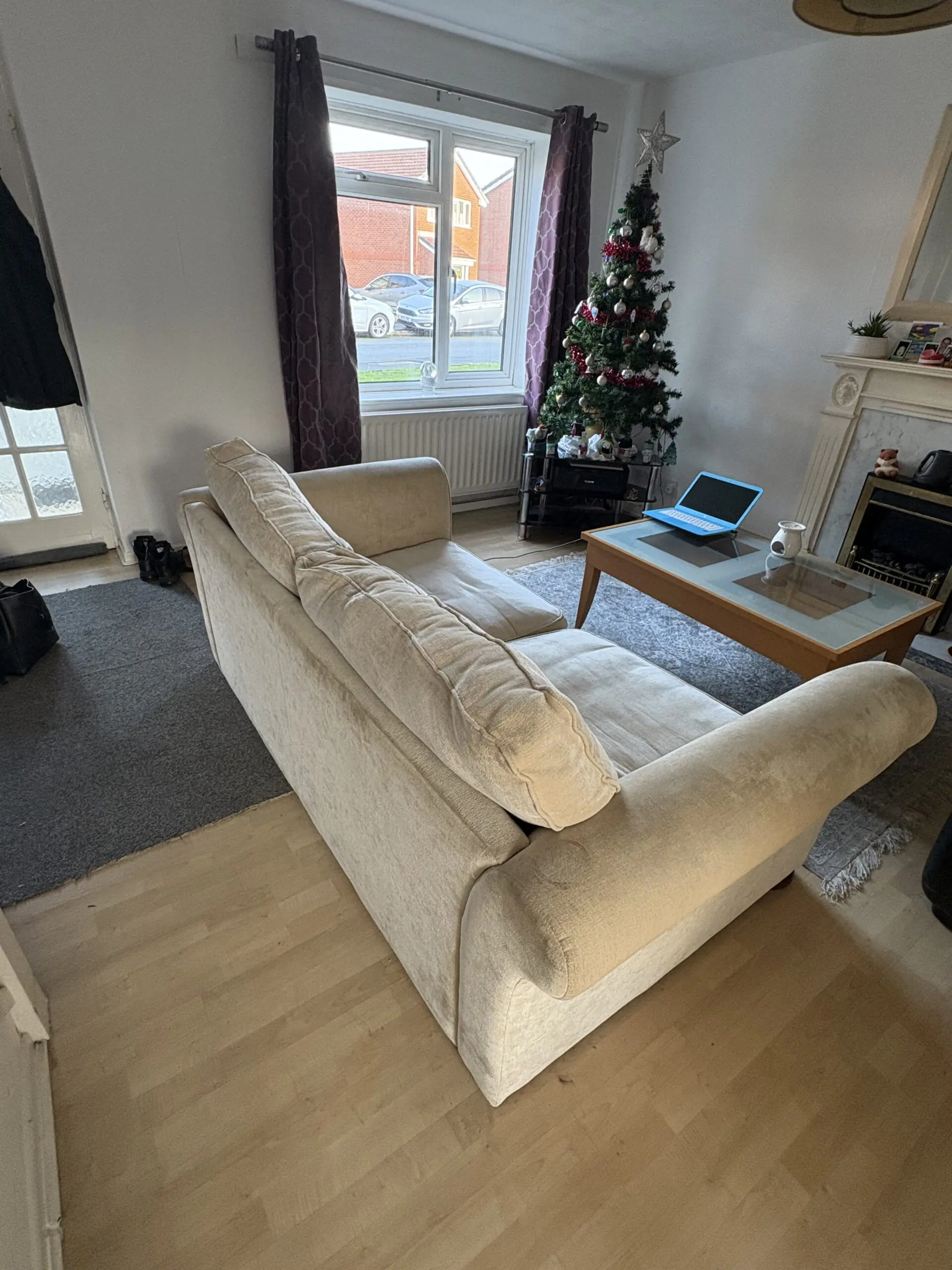 Cream in colour. Good condition. Some small stains as shown in picture.