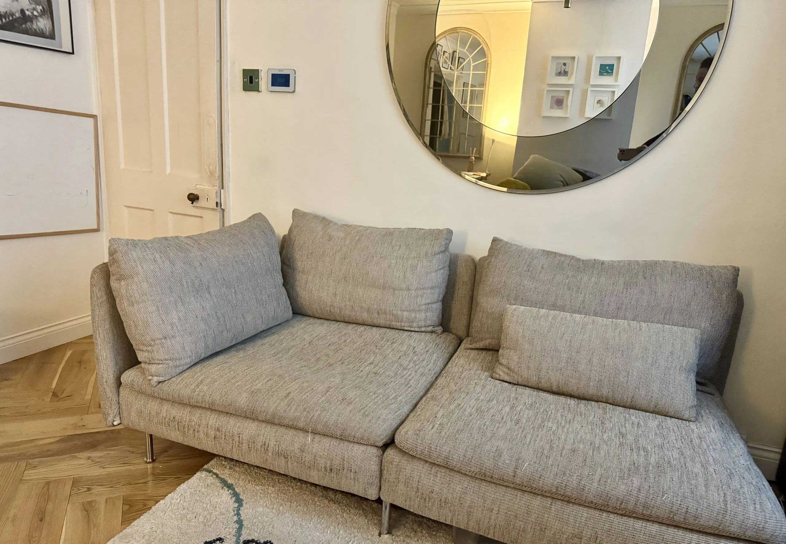 3 seater Ikea SÖDERHAMN beige/brown, with corner piece and open the other end. Good condition. Machine washable.