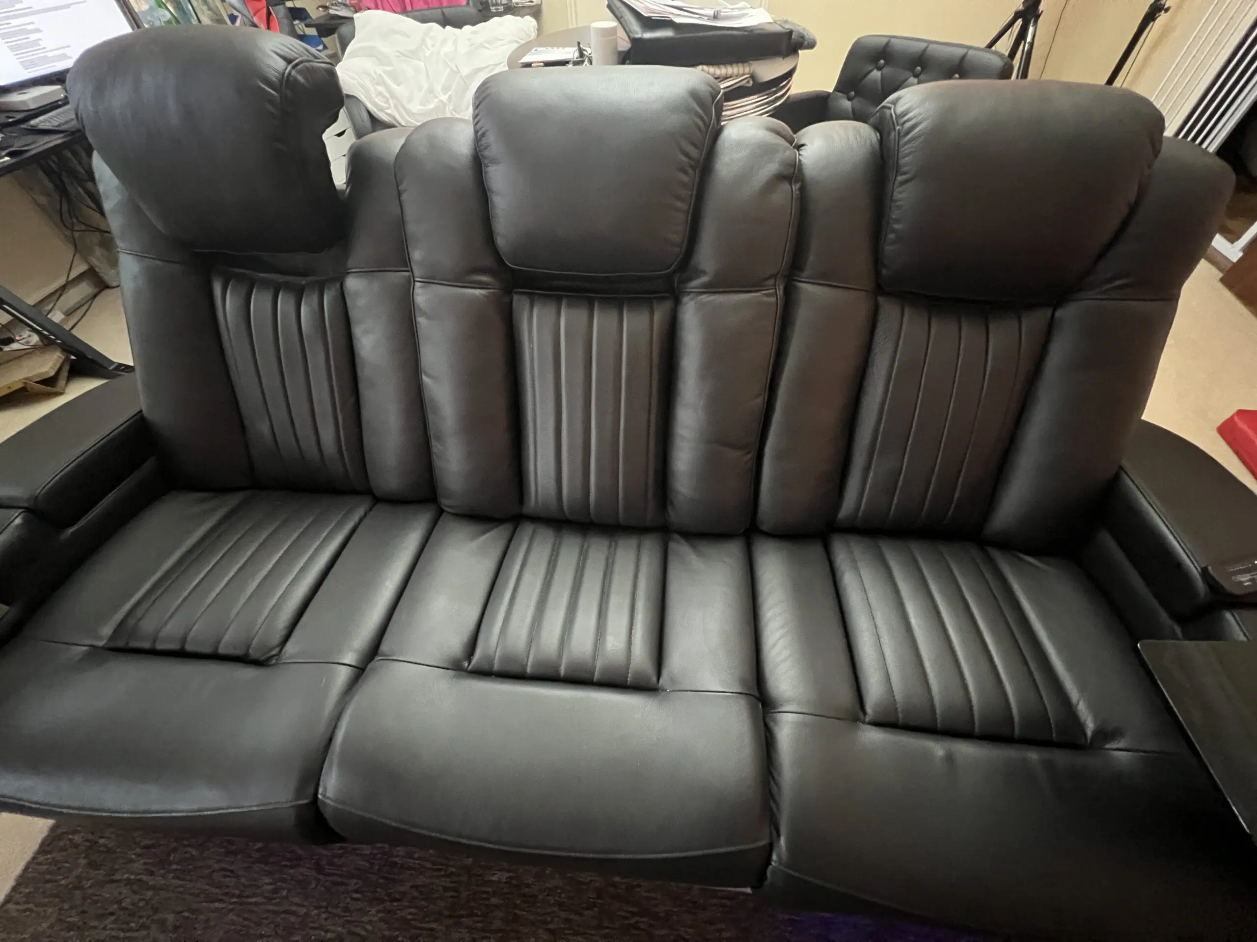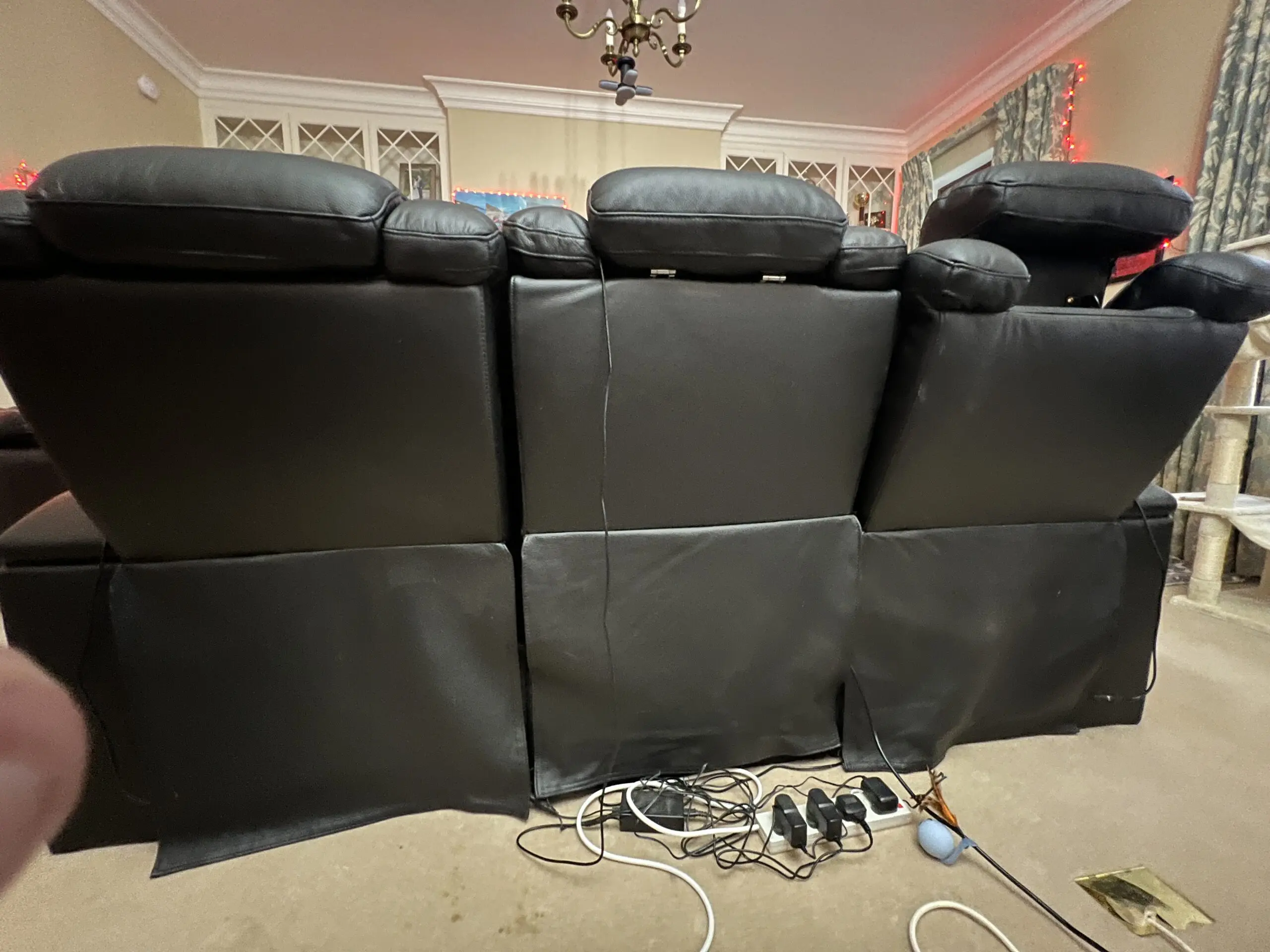 3 Seater Real Leather Cinema Recliner Sofa| Electric Couch with Power Plug Sockets, Wireless Charger Cup Holders,Reading Lamps, LED & 8 point Massage Purchased from The sofa Shop October 2024 for £2176.