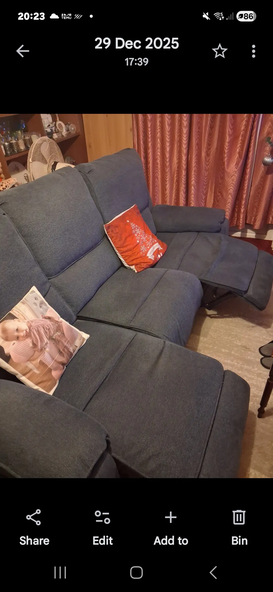 The sofa and chair I bought was as described by the seller - excellent condition. Delivery was quickly arranged and without any incidents. I was kept well informed of the delivery time on the day. Highly recommended.