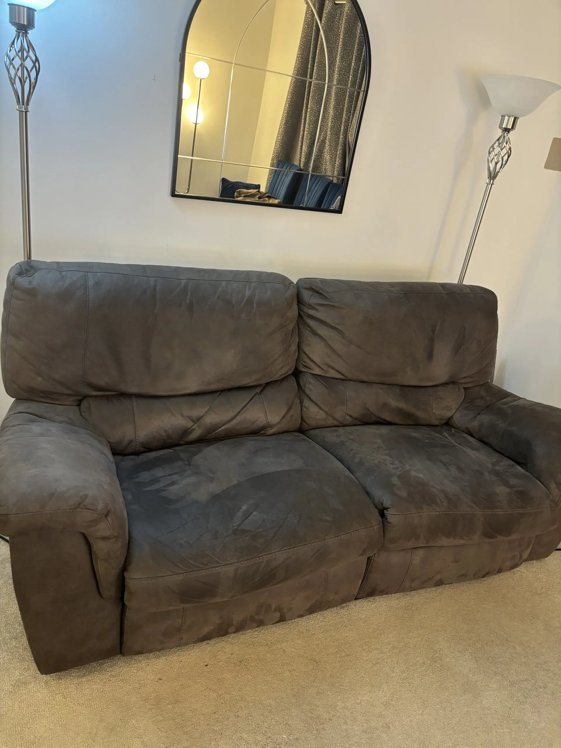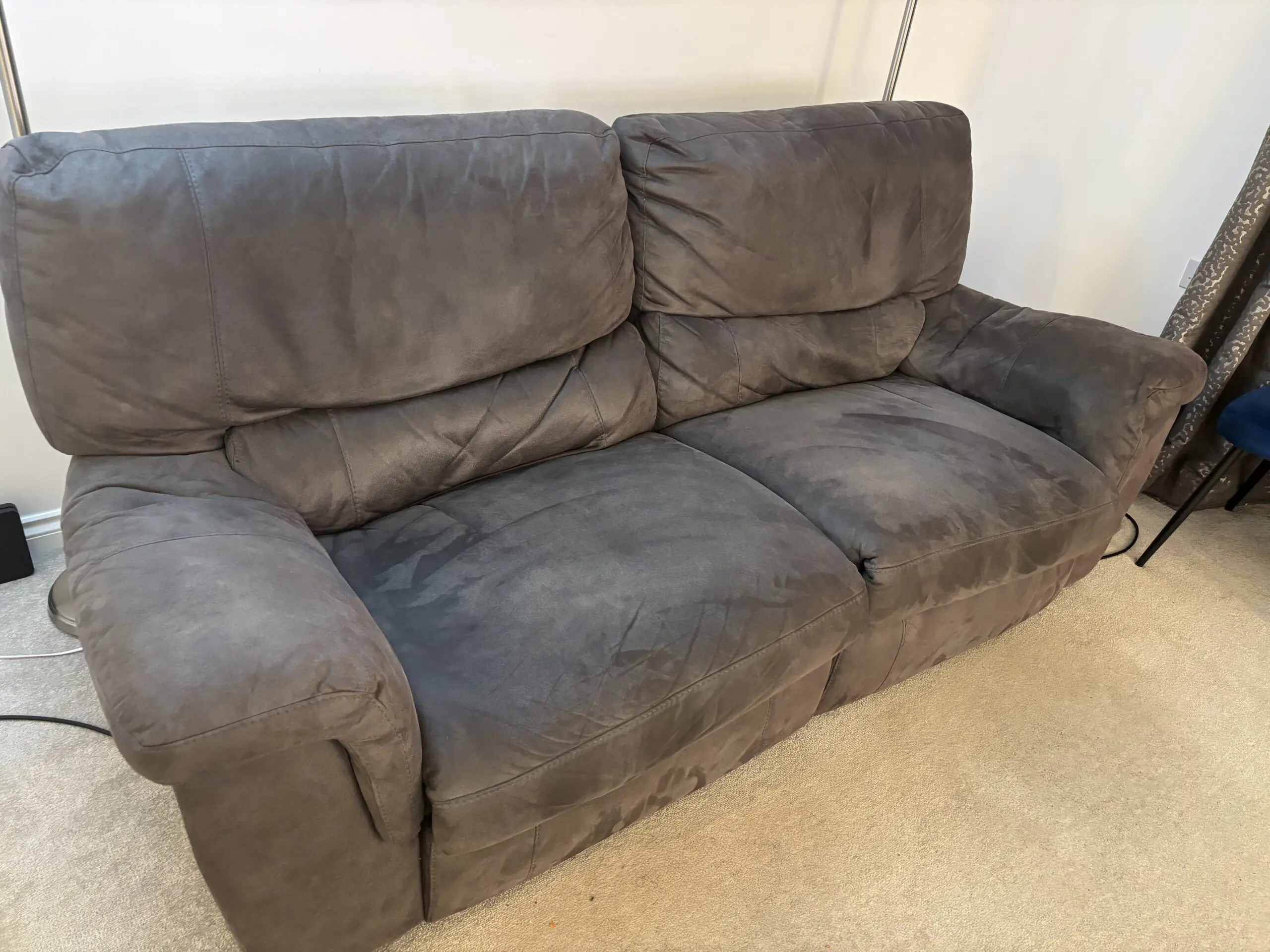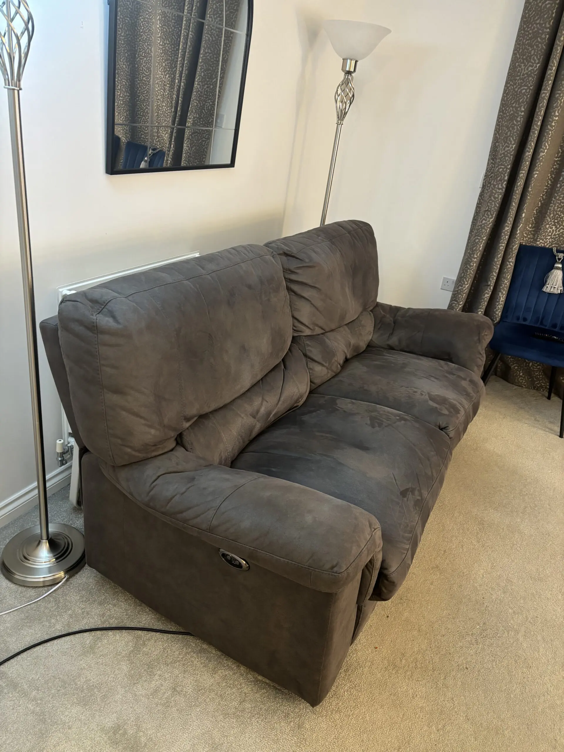 This brilliantly kept 3 seater recliner sofa with matching footstool also has storage in the stool. It’s a great texture and colour and will be the perfect addition for a living room area. It’s served us so well. I’m sure it will be the same for you.