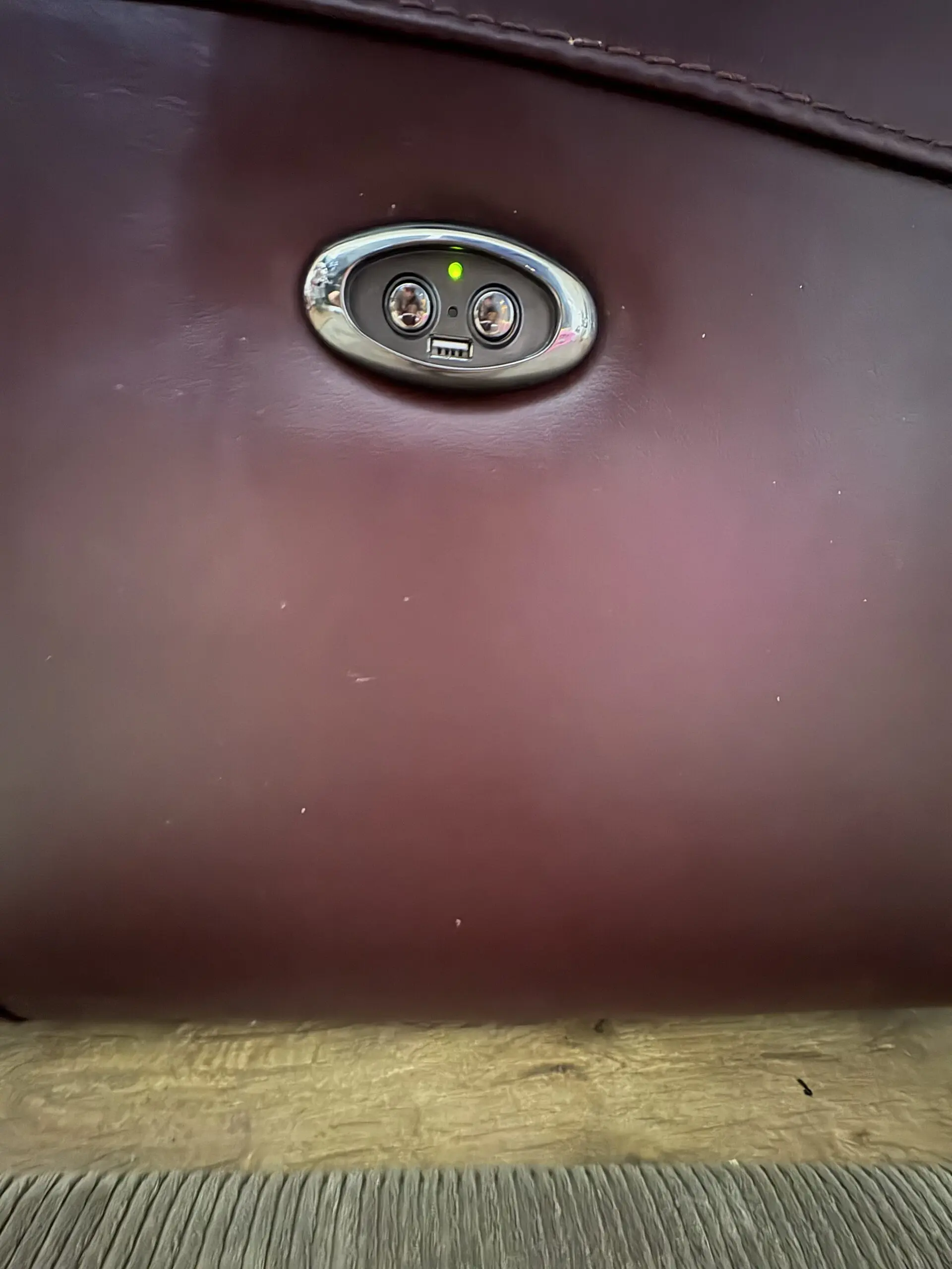 Leather electric reclining sofa with 2 built in USB chargers. Burgundy colour from furniture village.