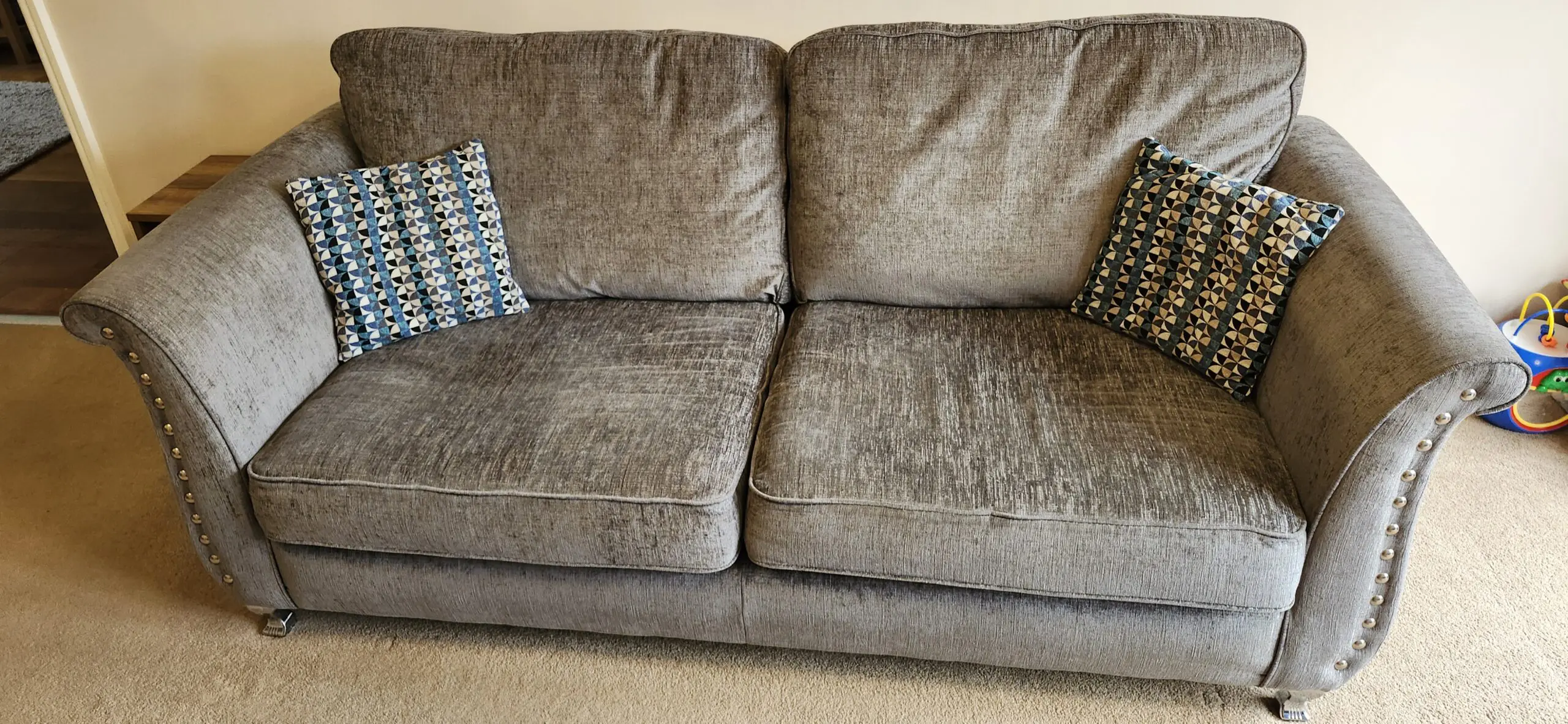Grey Fabric 3 seater settee. Excellent condition. From smoke and pet free home.