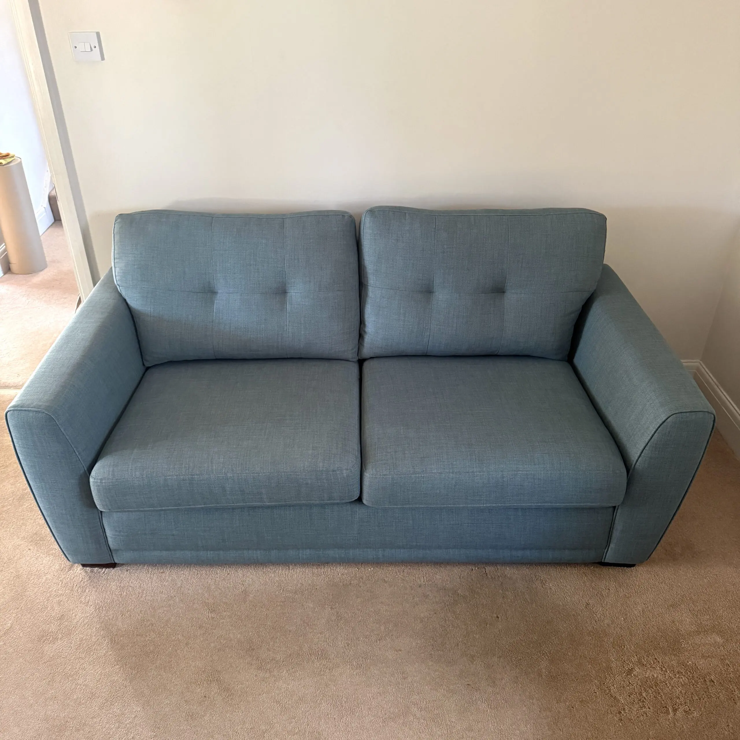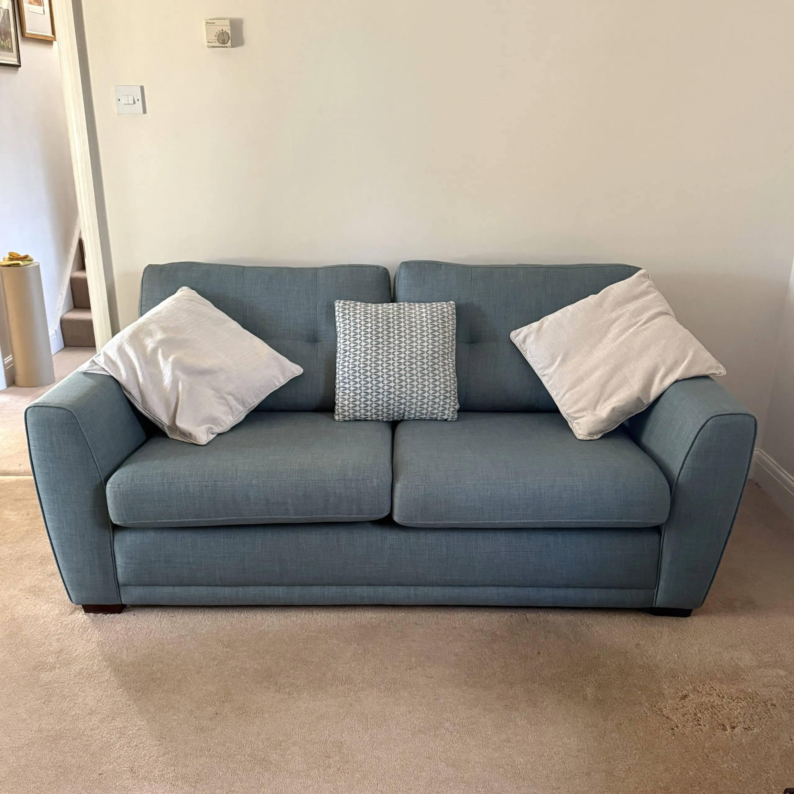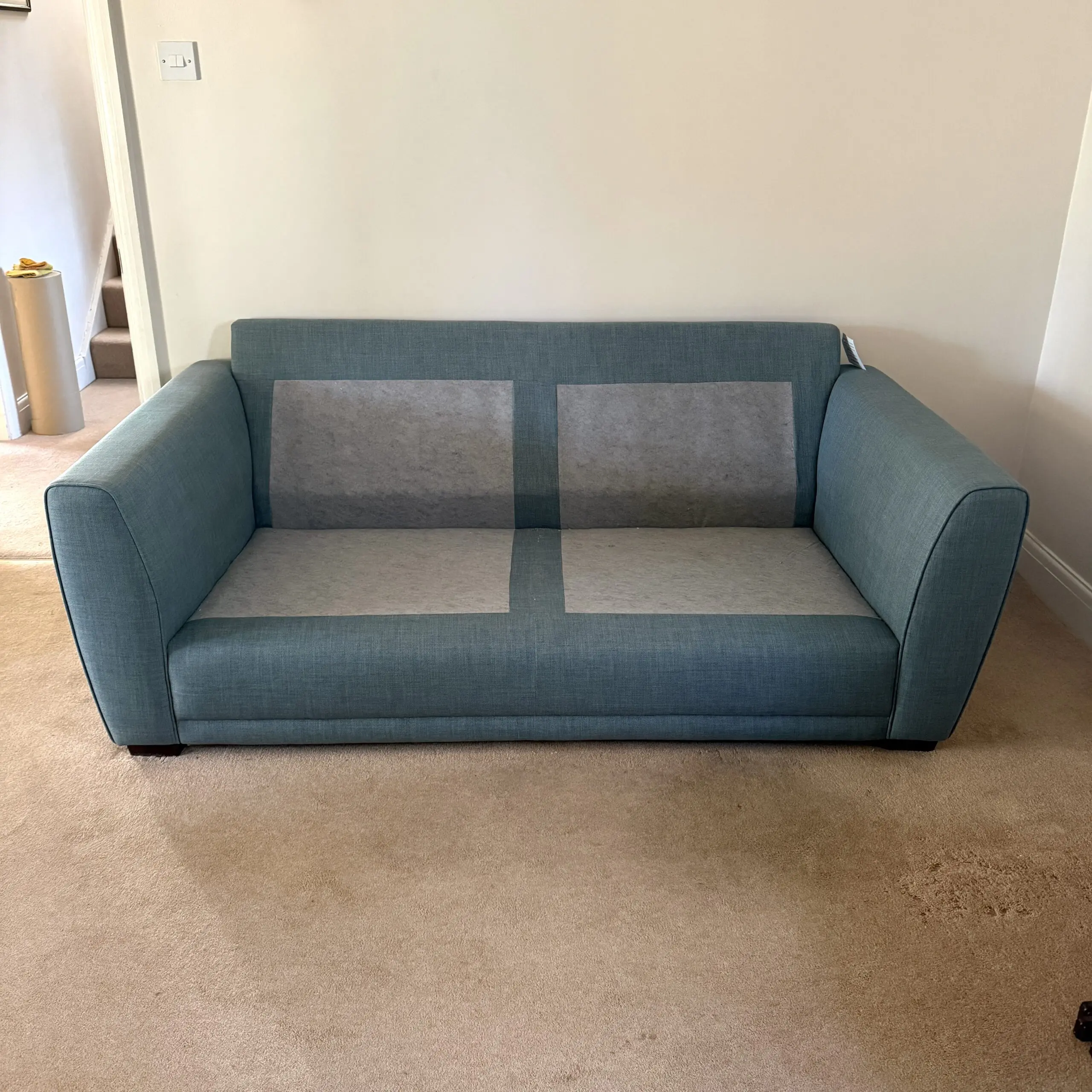 This lovely three seater sofa was purchased from DFS in January 2023 and has minimal use. The Kian sofa has a flat weave fabric in sky and is in great original condition. A matching two seater sofa is available on a separate listing.