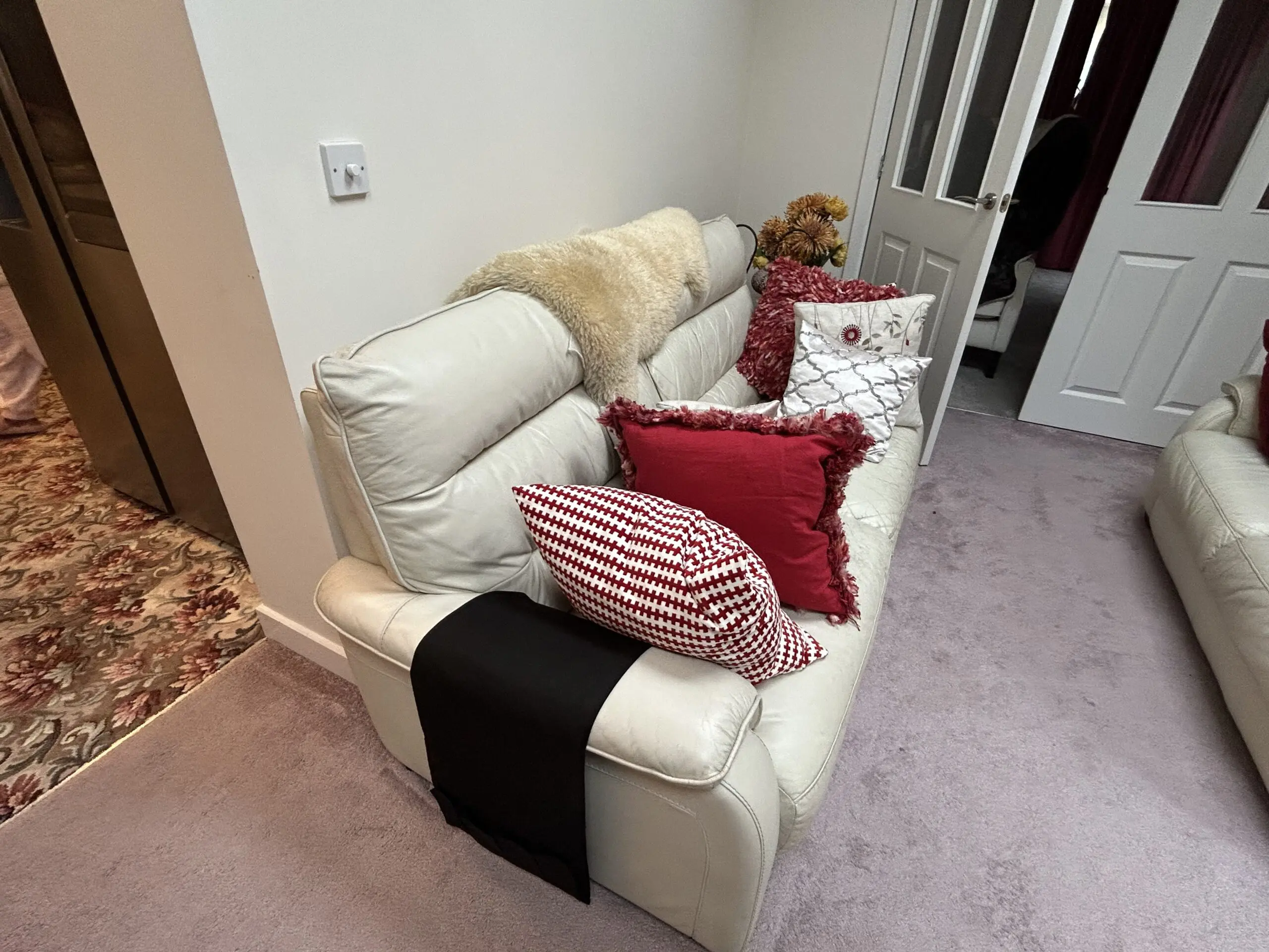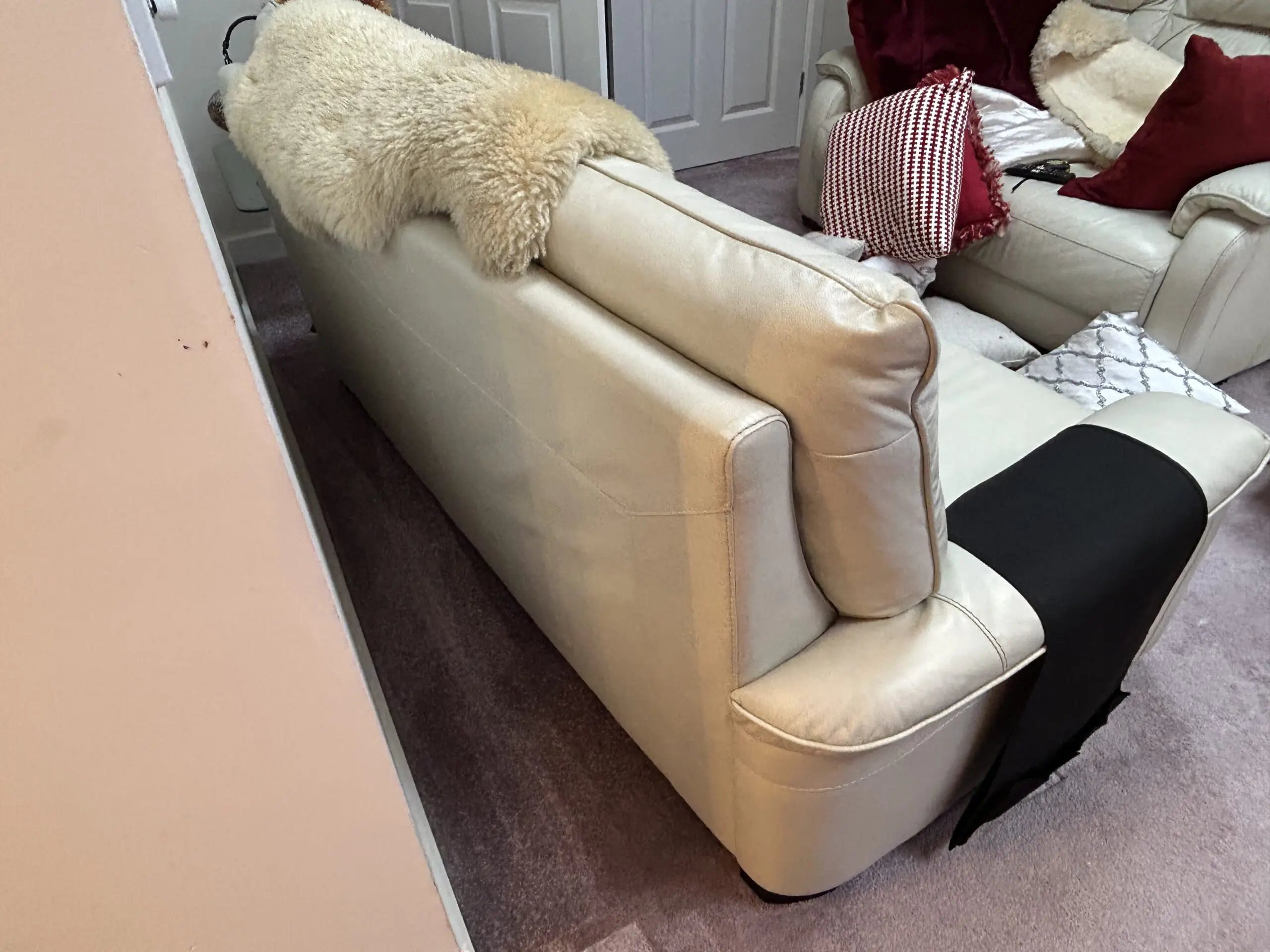 3 seater sofa white (fair condition ) about 6 years old. White leather. Only sofa for sale not cushions