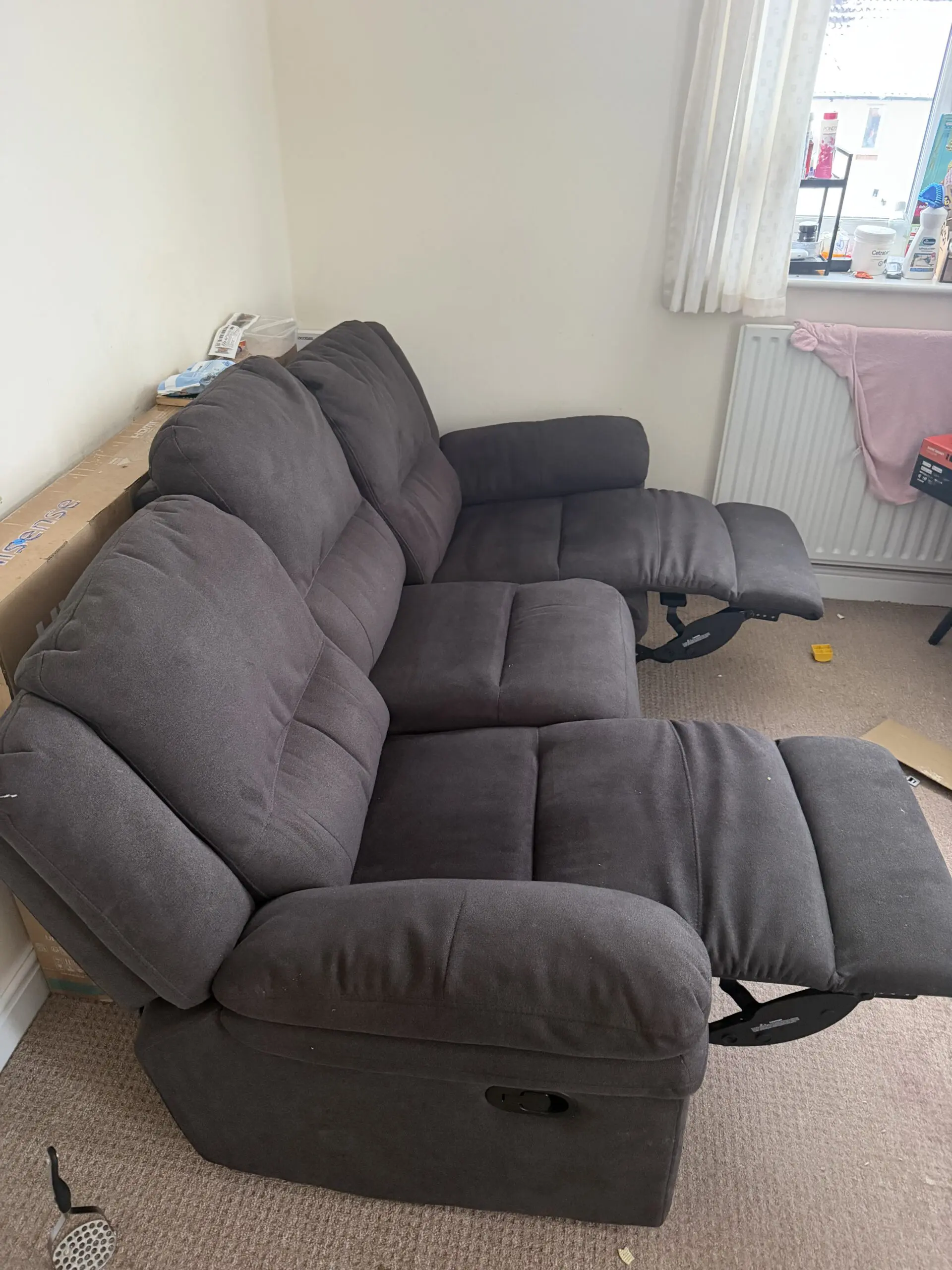 3 seater Manual Recliner sofa charcoal colour, from pet free home, 11 month old, regular usage, zero damage