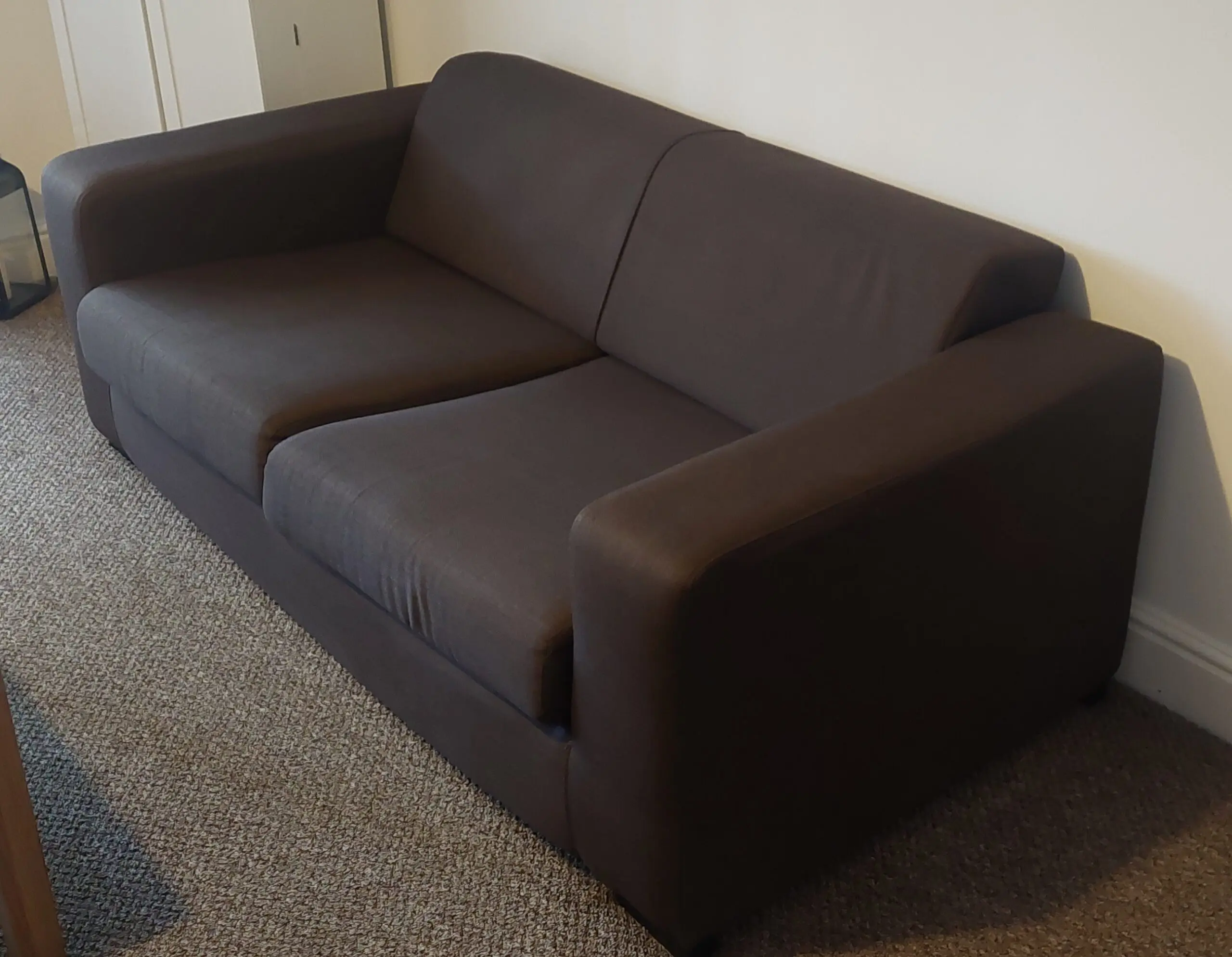 Argos,Chocolate 3 seater sofa,fixed cushions, used good condition, few light marks that can be easily removed with a clean. Pet and smoking free house.