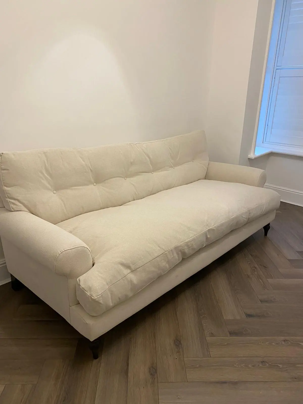Cream, linen weave. Bench style sofa. 4 years old. £2500 when purchased.