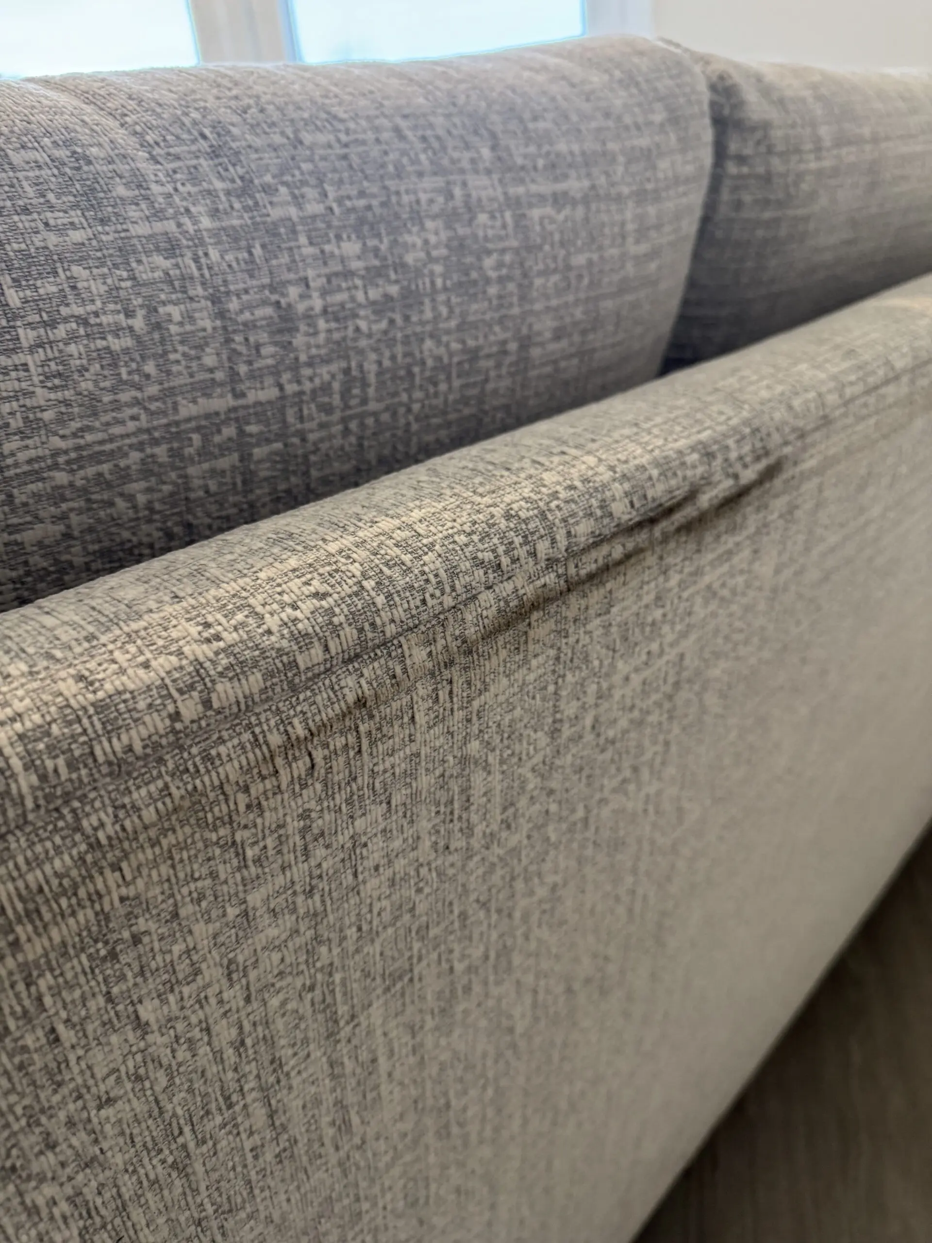 • the back edge and corners of it got dirty during move (from bottom of van) and I was too nervous to attempt a clean – I’m so confident it will come out with a steam cleaner. Not noticeable from front