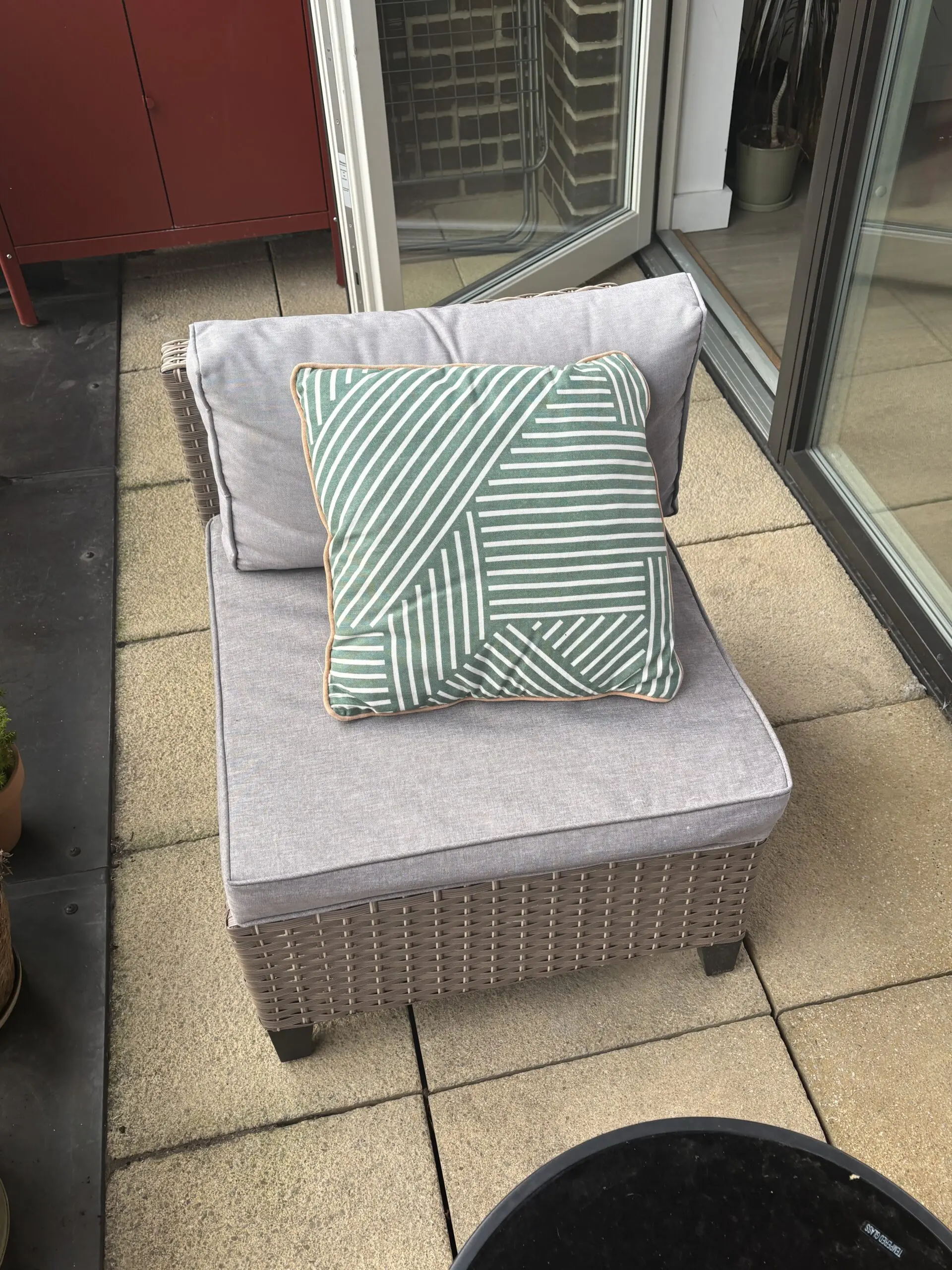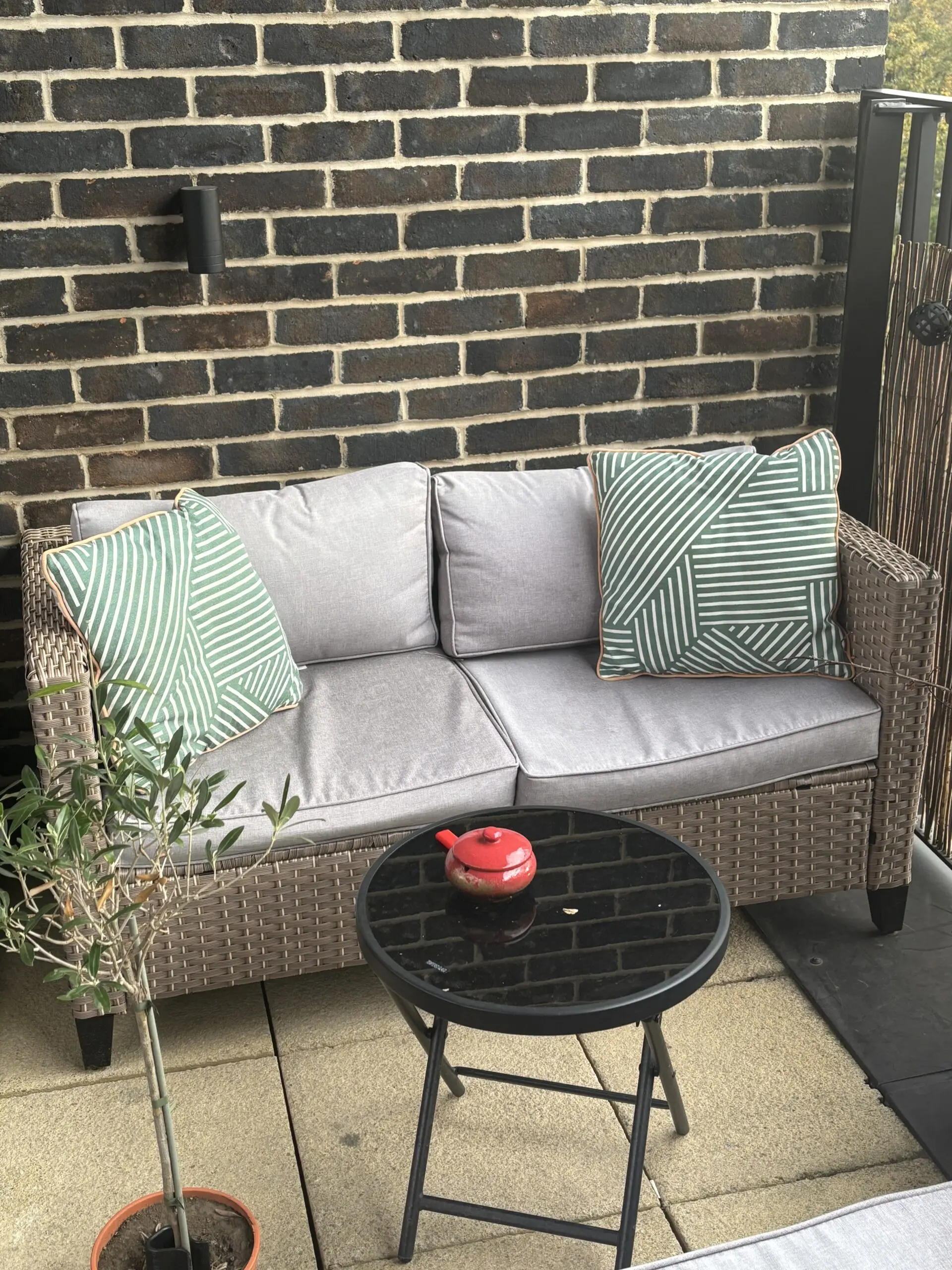 Bought it last year, it’s a modular sofa and we use a two seater plus 1 but you can move it and attach it as you wish. It comes with a table that it’s never been used with tempered glass