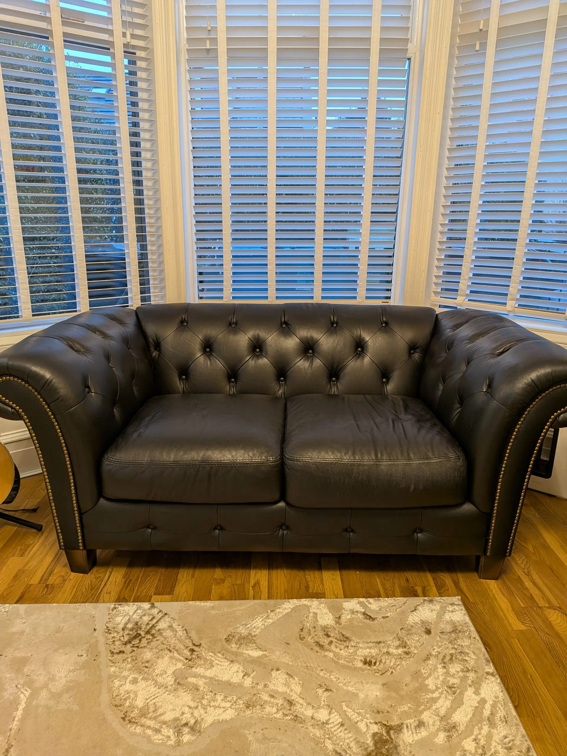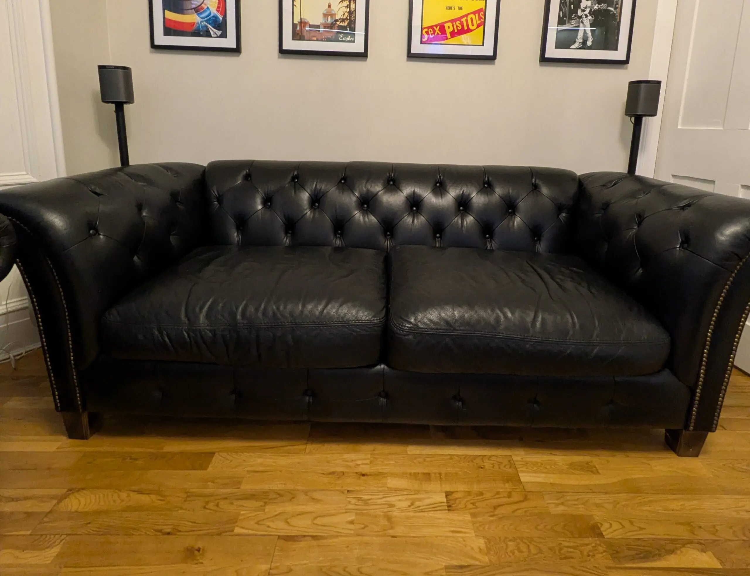Bay Leather Republic Black leather Chesterfield style 2 and 3 seater sofs