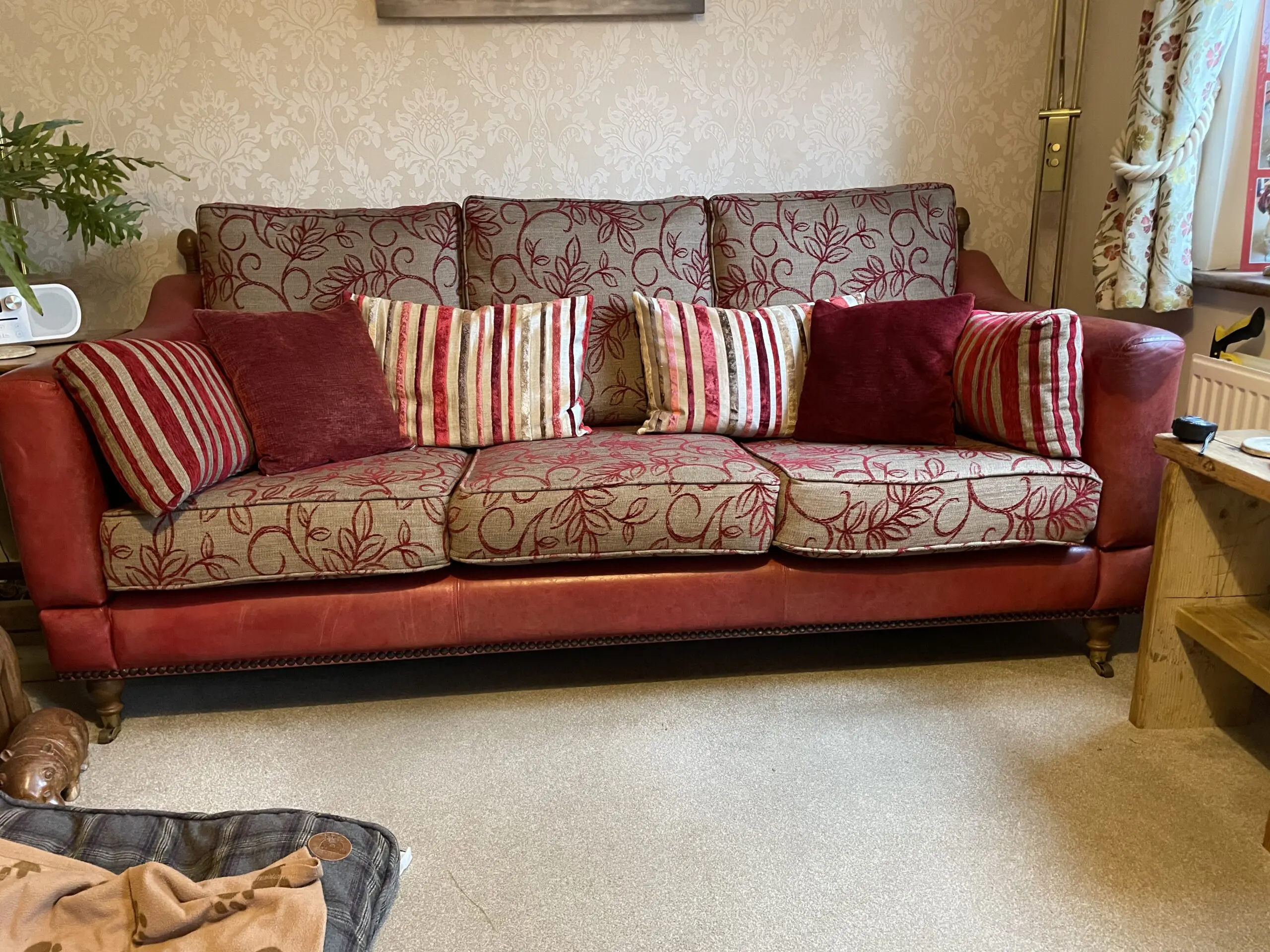 Stunning leather & fabric sofa – hand made(not mass produced )for home up country – solid pice of furniture