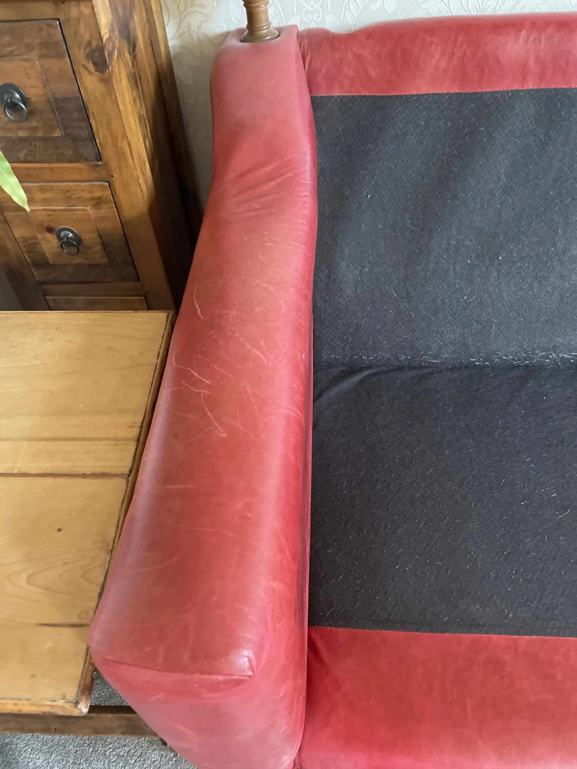 Age related marks/ patina/ fading to leather fabric & actual cushions in great condition